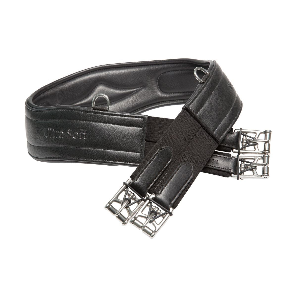Anatomically shaped saddle girth made of extremely soft leather which provides a comfortable fit. It's very robust with extra-wide cut for an optimal pressure distribution and simple adjustment from the seat. All lengths are available in extensions of 5 cm. Comes with roller buckles with Elastomer band. Available variants: Long girth, elasticated inserts on both sides with D-rings: 110-145 cm Short girth, without elasticated inserts and rings: 50-80 cm.