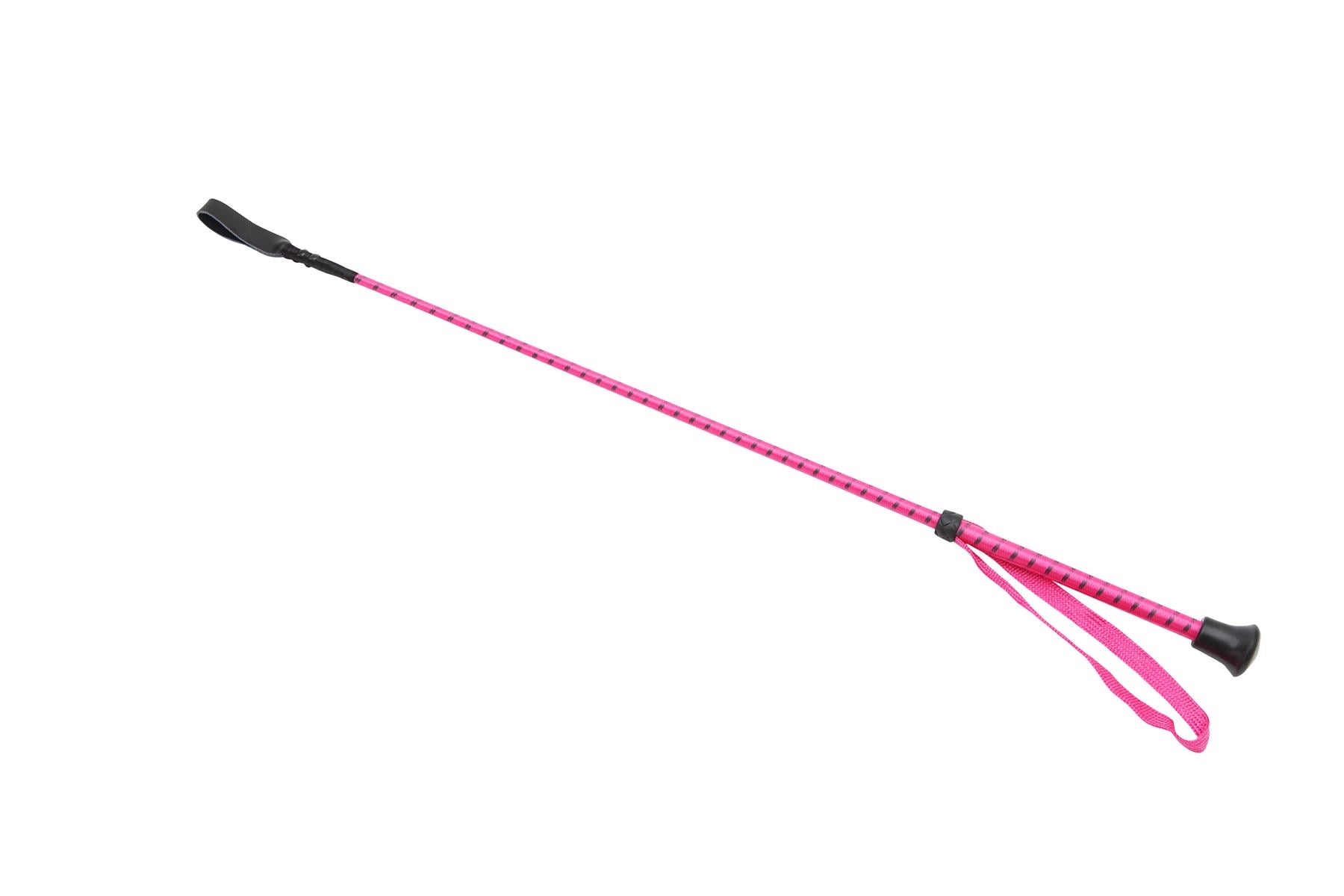 Nylon racing whip with stripe pattern. The length of the whip is measured including stroke.