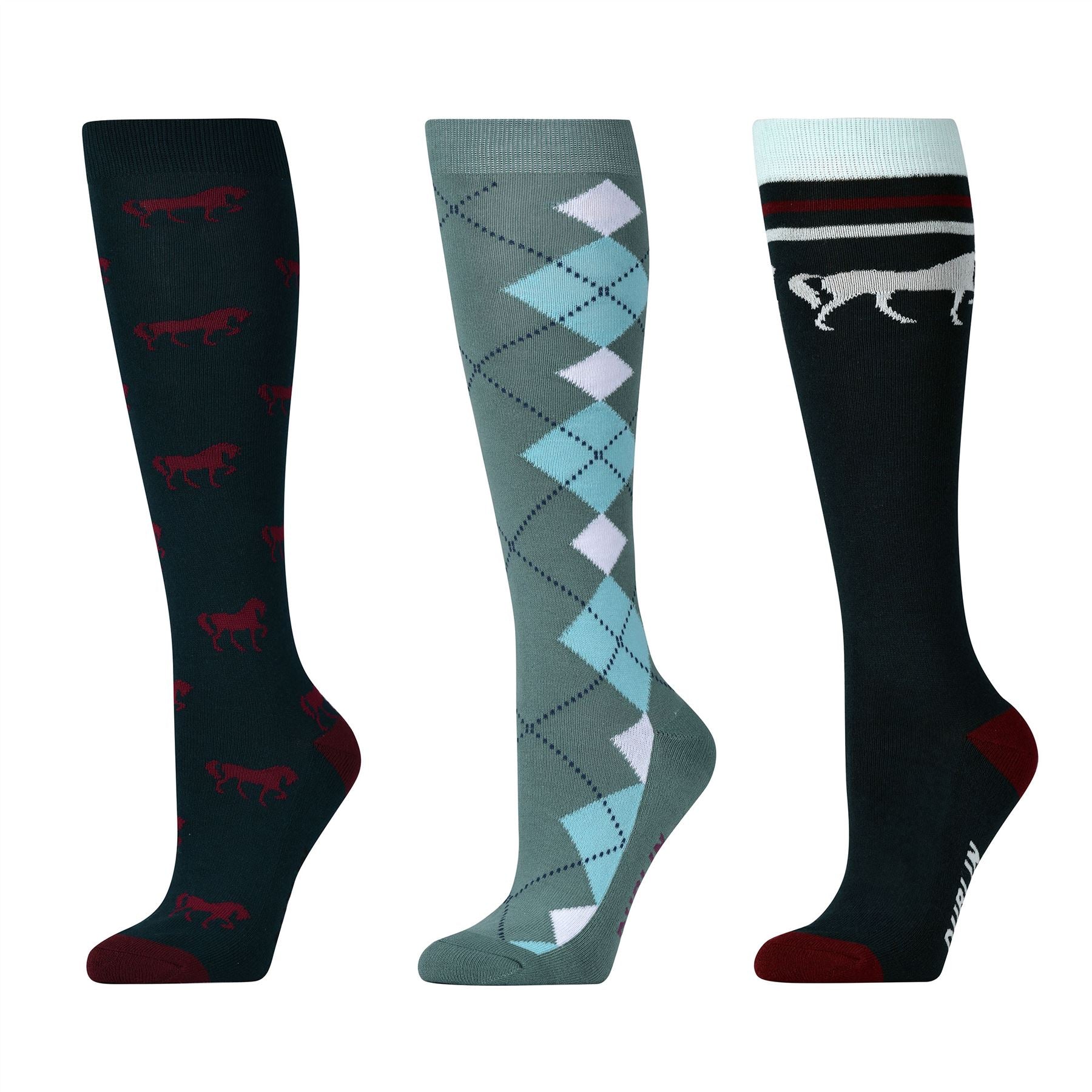 Pack of 3 pairs of high riding socks, made from a naturally breathable stretch cotton. Comes in assorted designs.