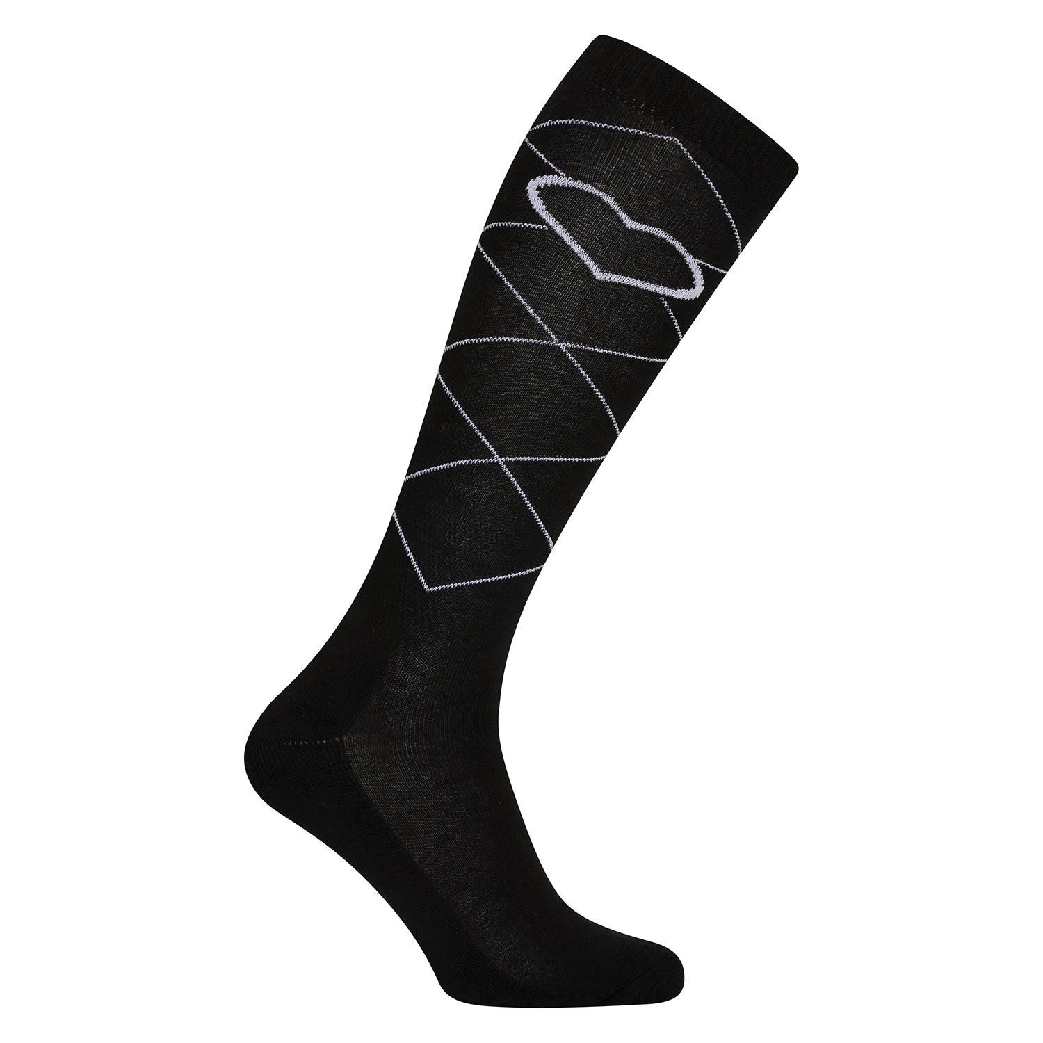 Keep your feet on the ground and wear the heart of Imperial Riding. These socks have iconic argyle knitted pattern in silver lurex yarn.