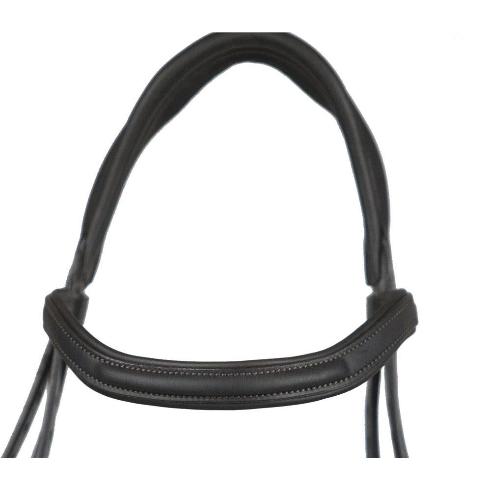 The bridle boasts a soft dipped and raised browband, adding a touch of elegance to its functional design. Crafted from premium materials, the browband not only enhances the bridle's visual appeal but also provides a soft and luxurious feel against the horse's forehead.