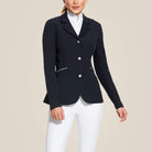 The superb design of this show jacket features stretch double-knit construction for an ideal weight that lays beautifully. Contrast 3D fabric panelling in all the right places is as stylish as it is strategic. The three-button front features a zip closure underneath to maintain a clean front all ride long.