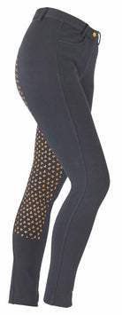 Indulge in the luxury of the Shires Aubrion Highbury Jodhpurs - Maids, designed elegantly for a seamless horse-riding experience. The intricately knitted fabric ensures maximum comfort while showcasing your style. In-built with silicone knee grips and saddle grips, these jodhpurs guarantee an unmatched level of control during all your equestrian activities. The design further incorporates two practical side pockets, perfect for carrying all your riding essentials. To finish off the modern look, beautiful Aubrion emblem prints complete the jodhpurs. Buy now and upgrade your equestrian wardrobe today.