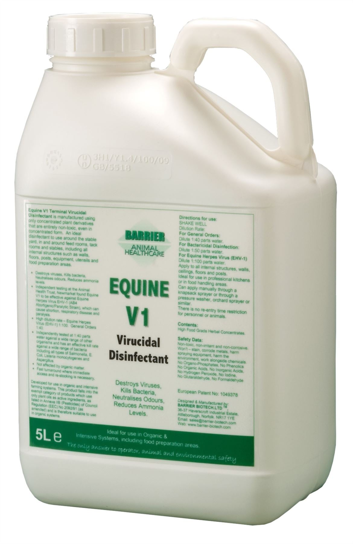 Shop now at Just Horse Riders for the Barrier Equine V1 Virucidal Disinfectant. This product is expertly crafted using only concentrated plant derivatives, ensuring it is completely non-toxic, even in concentrated form. It's perfect for scenarios that require a fast turnaround, such as immediate access and re-stocking.
