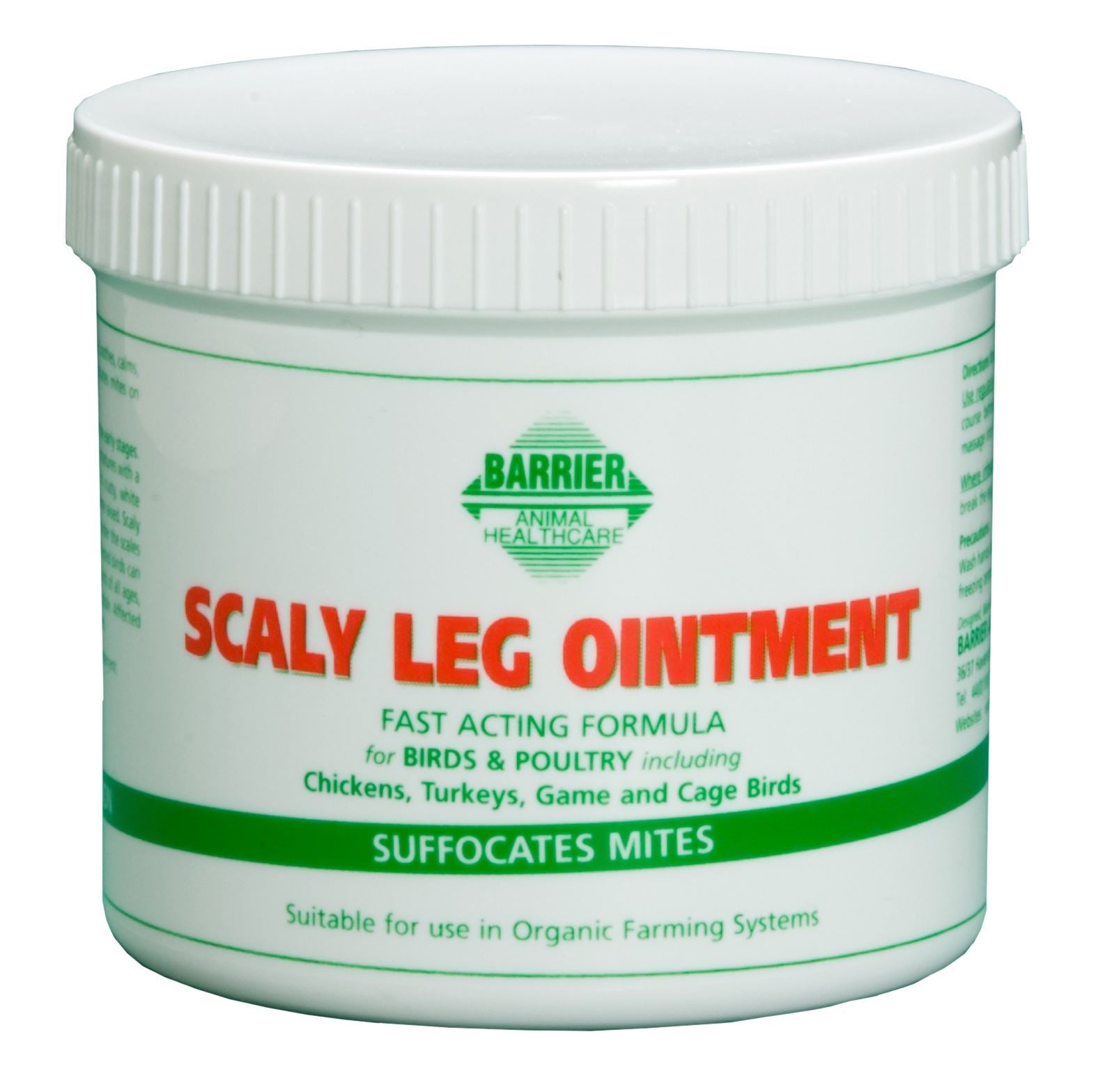 Shop now for the Barrier Scaly Leg Ointment, available at Just Horse Riders. This product offers intensive action against scaly leg mite, making it an essential addition to your bird care routine. Ideal for chickens, turkeys, game and cage birds, it acts as a robust barrier against scaly leg mite.