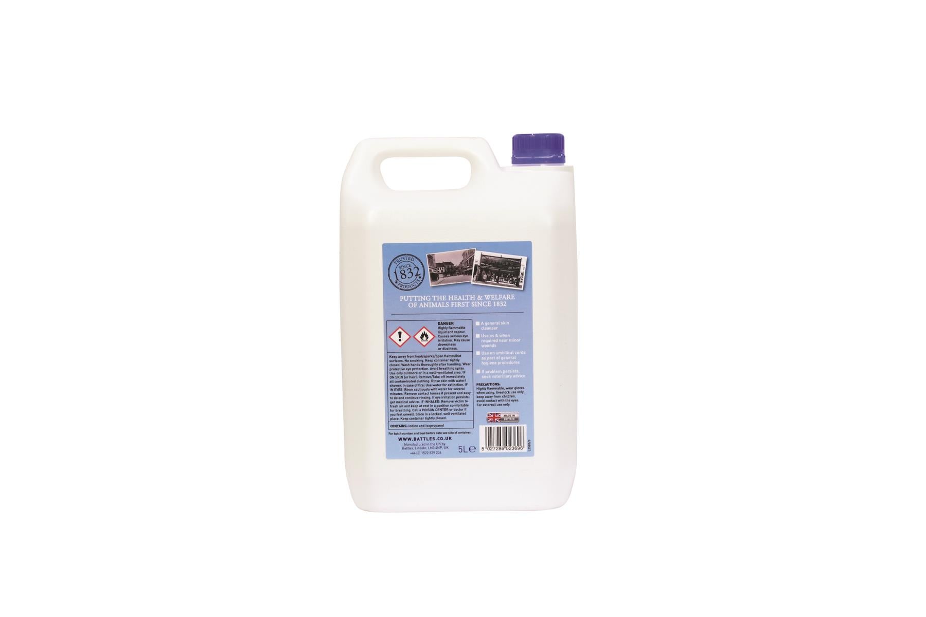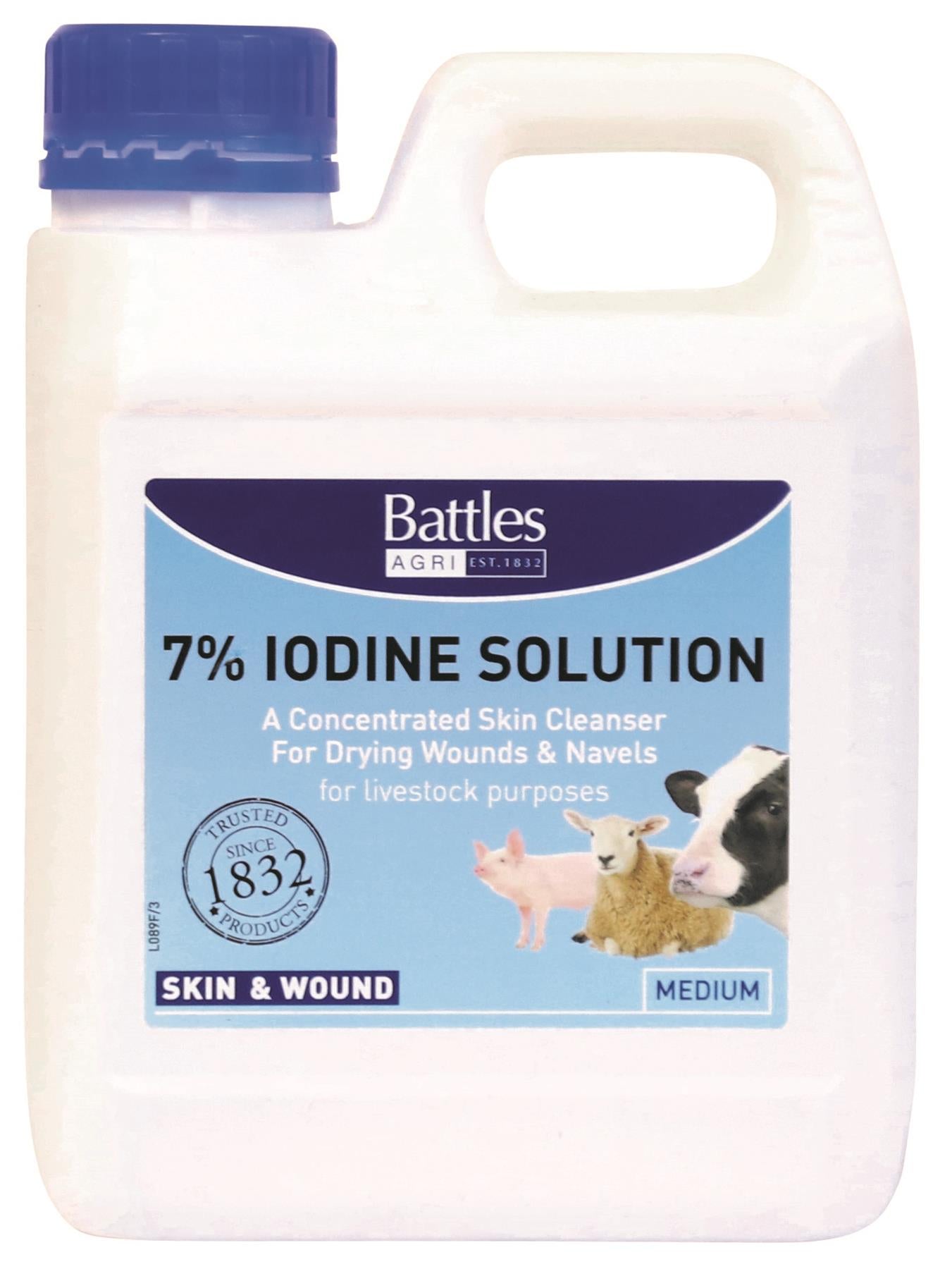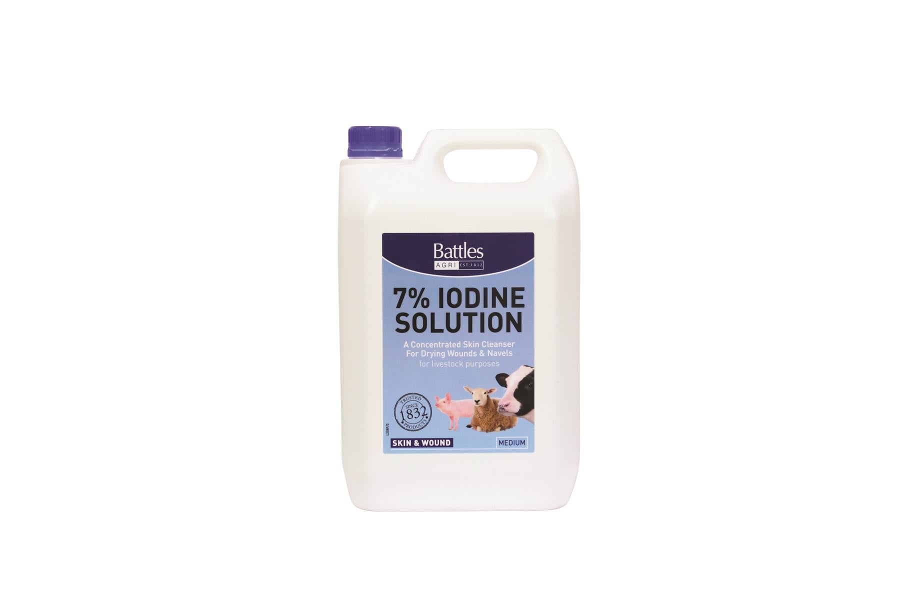 Shop now at Just Horse Riders for the Battles 7% Iodine Solution, a highly concentrated skin cleanser specifically designed for livestock management. This product is an essential addition to your equestrian care kit. The 5-litre Iodine solution must be ordered in batches of 10 and the 2-litre solution in quantities of 20, in compliance with ADR regulations. Enjoy quick dispatch and delivery when you order from us. If you have any questions, feel free to reach us at Contact Us for top-notch customer service.