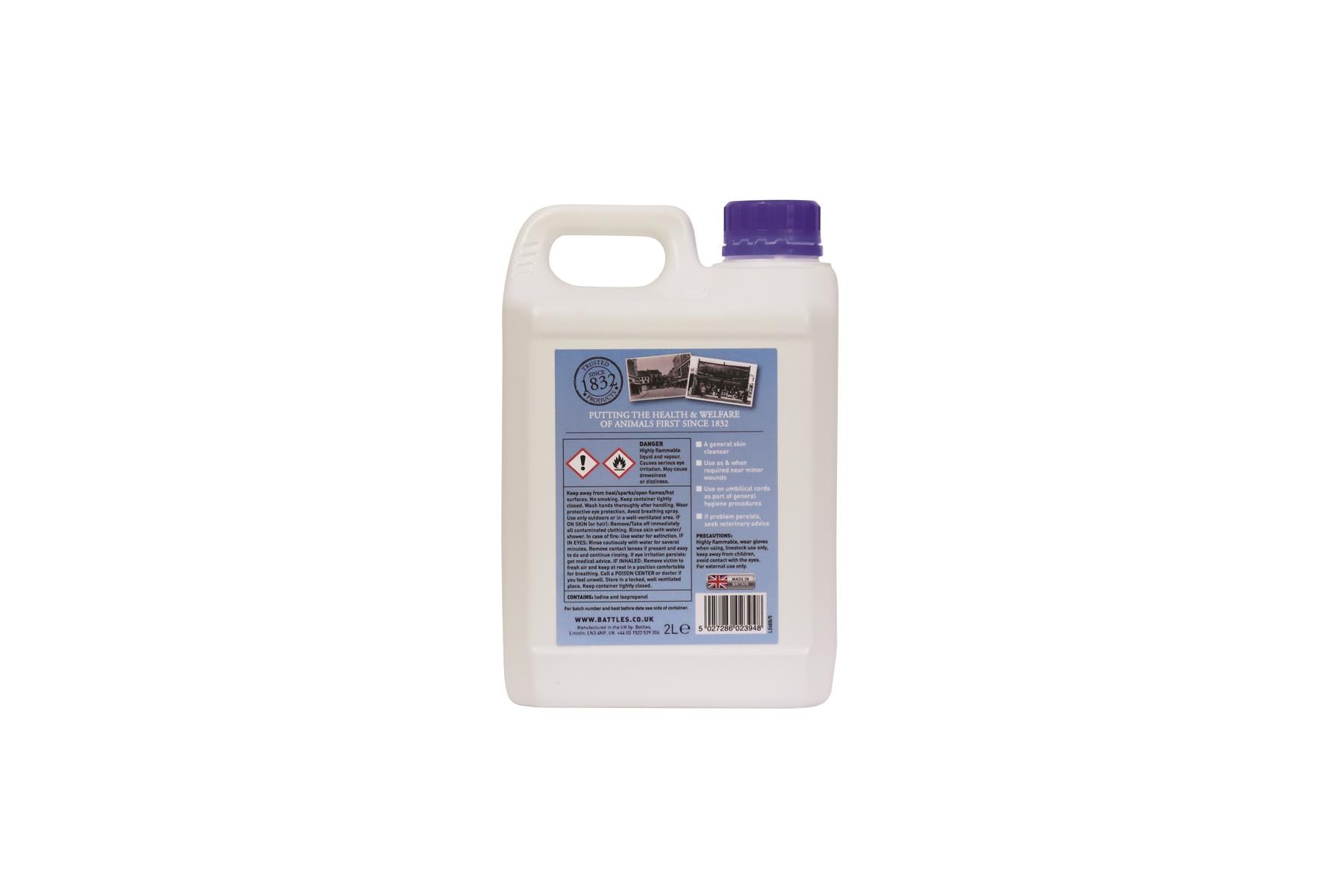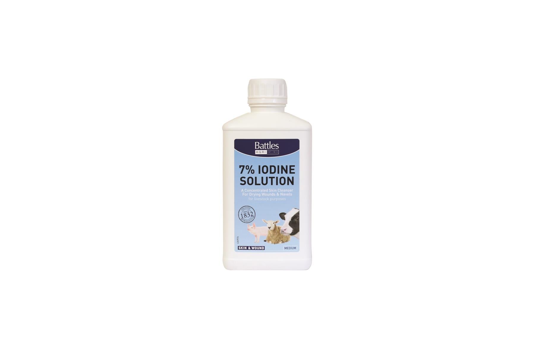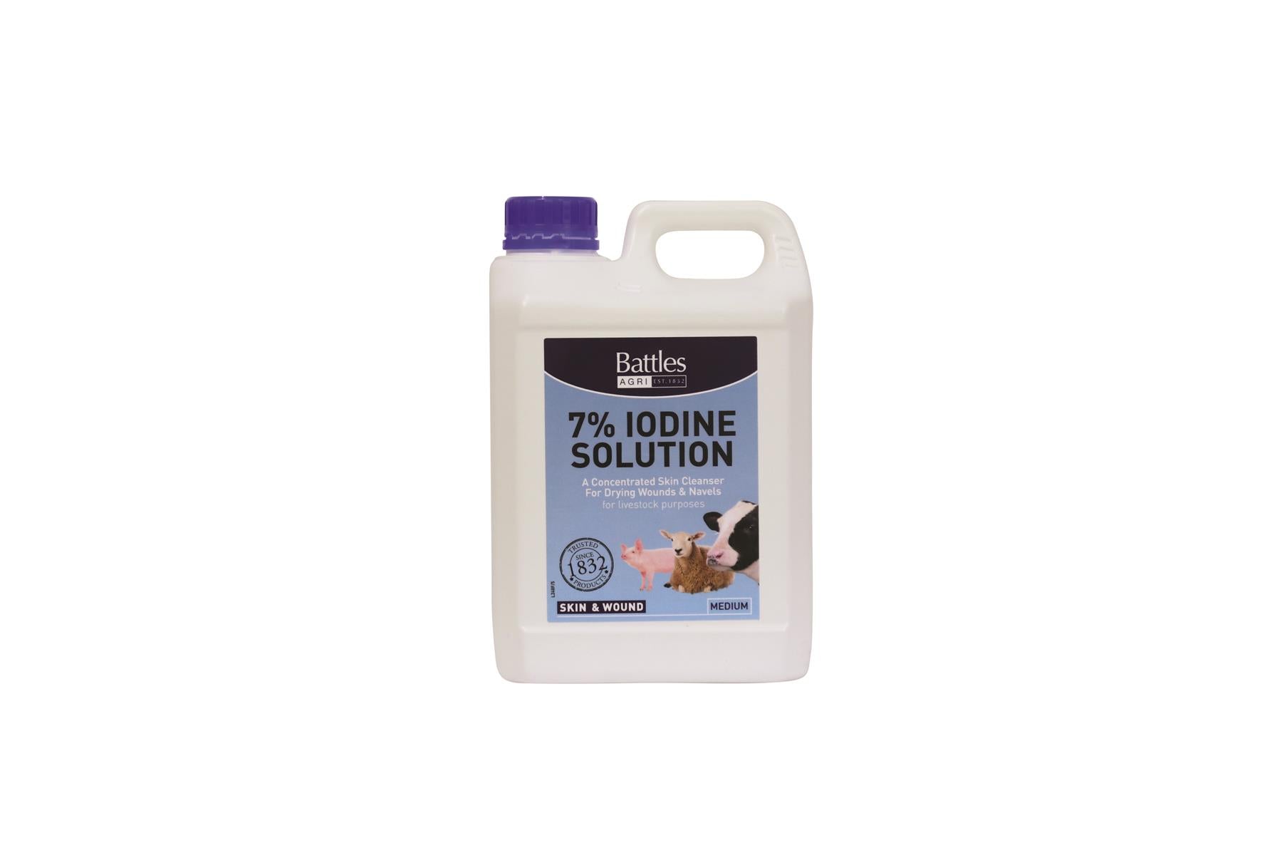 Shop now at Just Horse Riders for the Battles 7% Iodine Solution, a highly concentrated skin cleanser specifically designed for livestock management. This product is an essential addition to your equestrian care kit. The 5-litre Iodine solution must be ordered in batches of 10 and the 2-litre solution in quantities of 20, in compliance with ADR regulations. Enjoy quick dispatch and delivery when you order from us. If you have any questions, feel free to reach us at Contact Us for top-notch customer service.