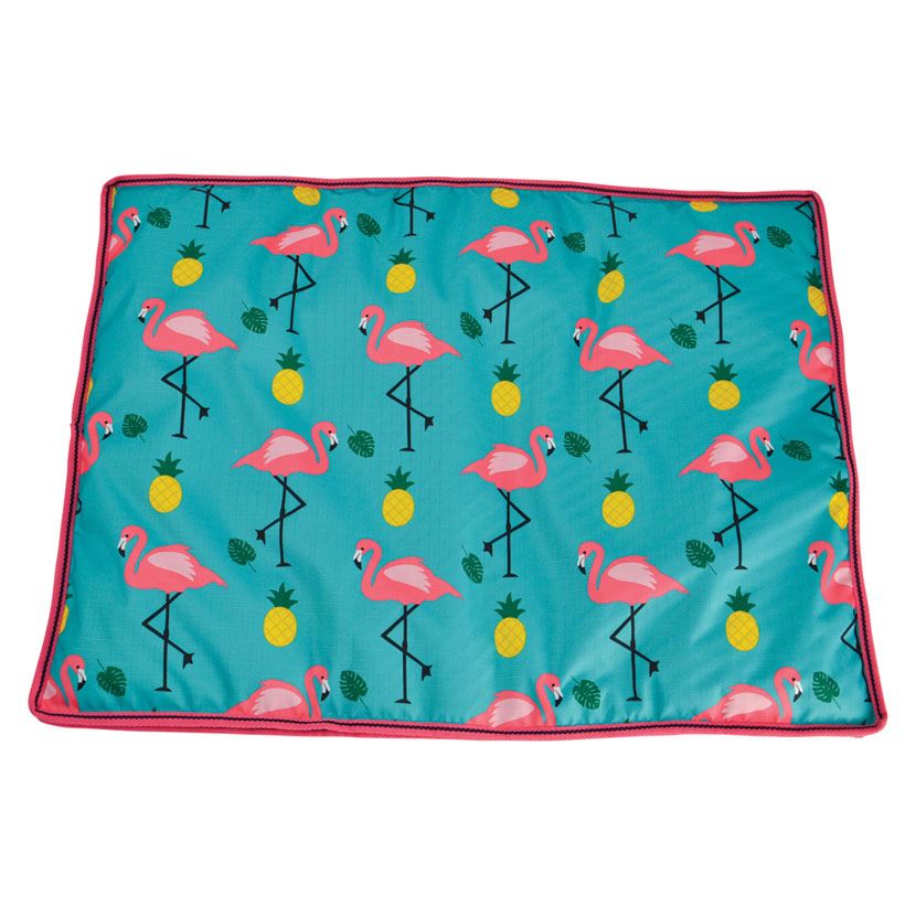 Every dog deserves a cool and comfortable bed! Made with the bright and bold Hy Flamingo print, this durable bed is waterproof and made with ripstop material. The inner padding zips out for easy cleaning.