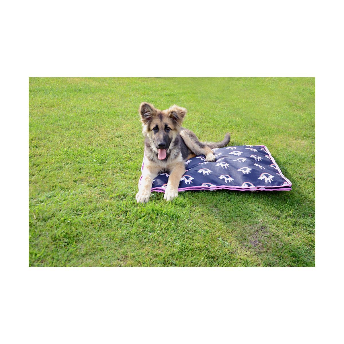 Let your dog feel magical with our cute and fun unicorn themed dog bed. This bed is both durable and comfortable. Perfect to use in the back of your car after walks or at home. Waterproof and made with ripstop material for an easy clean.