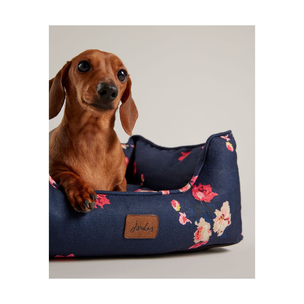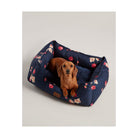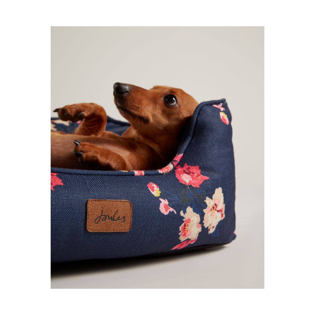 Iconic Joules floral print canvas bed with reversible navy plush cushion, Thickly padded on all sides to provide warmth and extra comfort with a Non-slip base. Machine washable at 30�C.