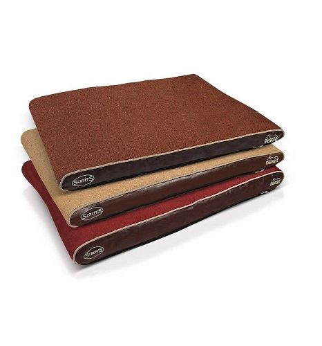 Scruffs Hilton orthopaedic pet beds are designed predominantly for larger breeds or pets that require more support for their joints, back or body. The beds are filled with crumb memory foam, these dense particles mould to the shape of the pet to achieve the ultimate level of support. The cover features a hard-wearing faux hessian chenille top fabric with faux leather side walls, these are trimmed with a contrasting piping and embroidered logos. An inner water-resistant liner helps protect the bed's memory fill against the ingress of water and odour. As with all Scruffs beds, the outer cover can be removed for machine washing and has a non-slip base. These beds are available in two sizes: 100x70x6cm with a memory crumb fill weighing 5.5kg and 120x75x8cm with a memory crumb fill weighing 8.2kg.
