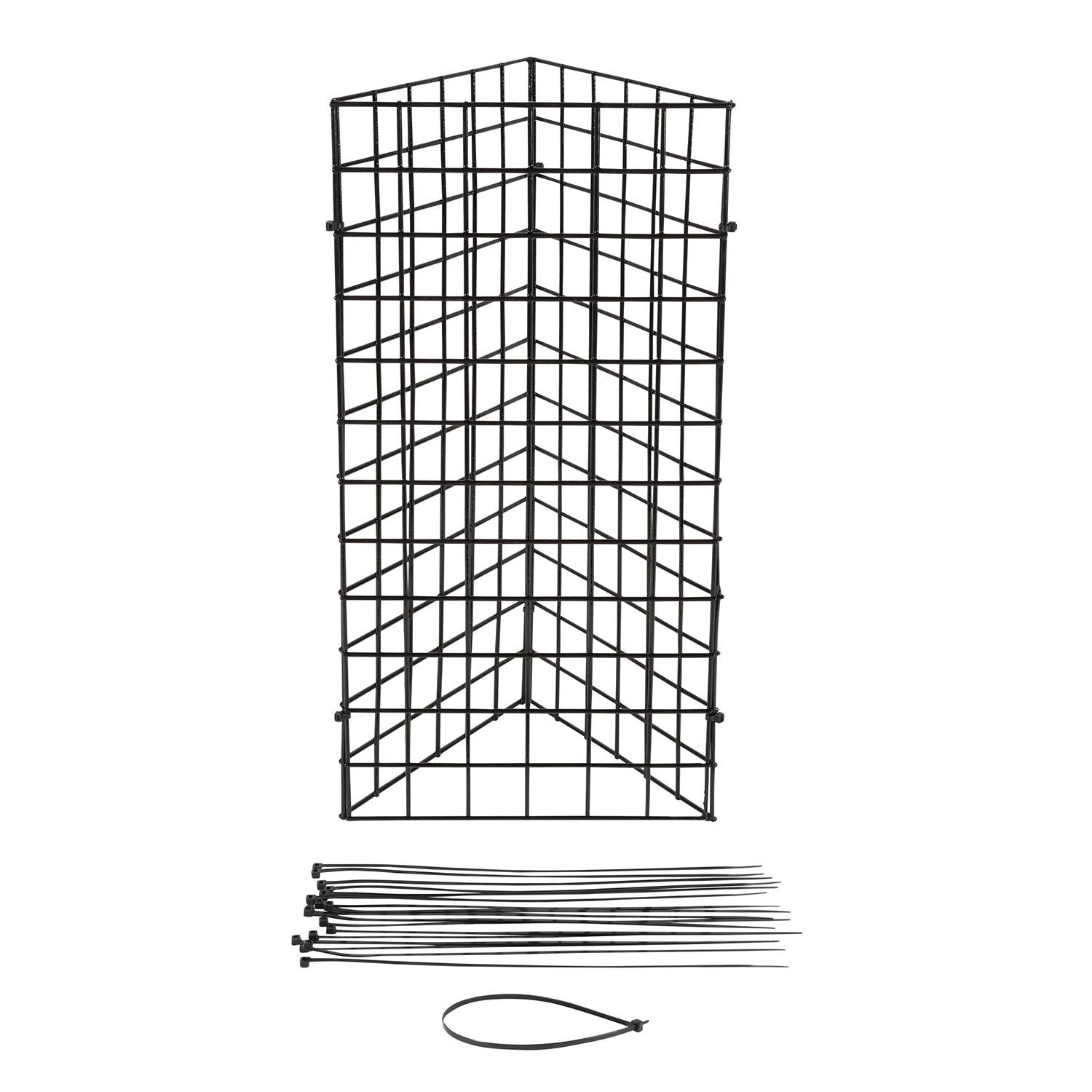 Highly effective for displaying horse bits and other smaller, hard to display products. Supplied with 24 cable ties, six for assembly and 18 for product attachment. Fabric or card can be placed inside the rack to create various effects. Good product security is achieved using cable ties. Fixing down of the rack is recommended if protruding or heavy products are to be displayed. Supplied flat, unassembled and without card. Steel mesh, black stubbyfine coated. Height 61cm, width 30.5cm and depth 28cm.