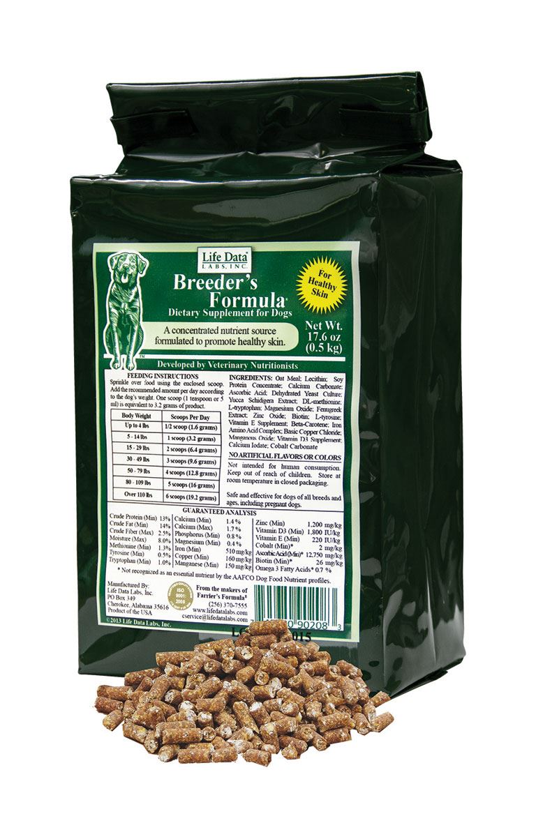 Breeder's Formula� is a concentrated nutritional supplement formulated by veterinary nutritionists to reduce nervous behaviour in dogs and lessen compulsive itching, licking, and skin chewing. This product is safe and effective for all breeds and ages, including pregnant dogs.
