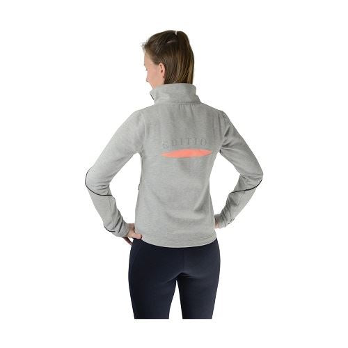 This is A stylish horse riding soft fleece jacket that's ideal for use around the yard on those chillier mornings, at the shops or even the gym. This dynamic zip up jacket features zip pockets with a reflective strip on either side, black piping around the sleeves and a peach mesh panel on the back to allow air flow. Perfect for all aspects of an equestrian's life.