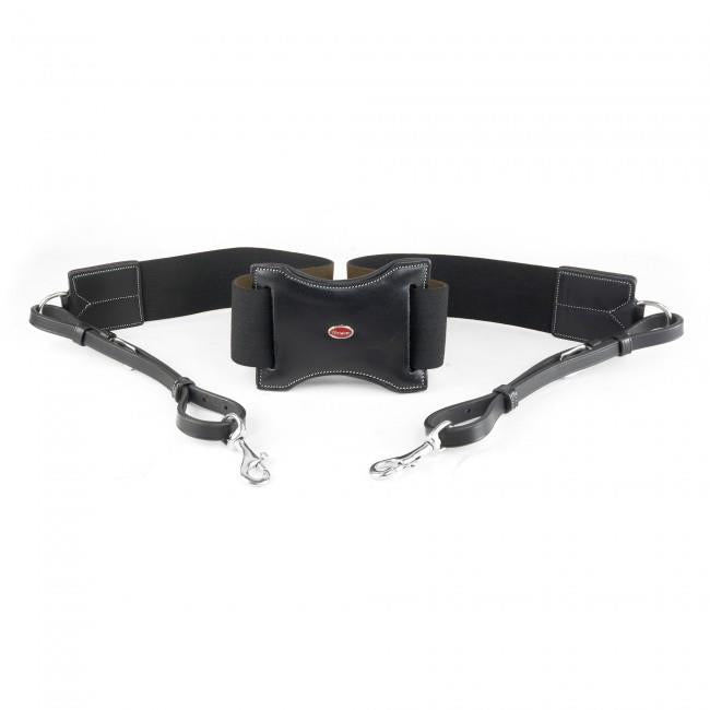 BP048 - EASTWOOD 6CM BREASTPLATE Made from a thick durable elastic, stainless steel hardware, trigger clip attachment, contrast stitching, leather central plate with red Whitaker badge. SIZES: PONY, COB, FULL COLOURS: BLACK OR HAVANA