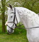 This beautiful bridle is made from the softest of leathers. The extremely soft and padded headpiece is gently curved to offer ultimate comfort for the Horse. The noseband is fully padded with soft leather around the entire front of the nose with a generous leather pad behind the chin for the fastening to sit on. This bridle has a mexican style/ grackle noseband. Supplied with smooth feel leather reins The softest of leathers Anatomically sympathetic to the Horses head Supplied with Reins