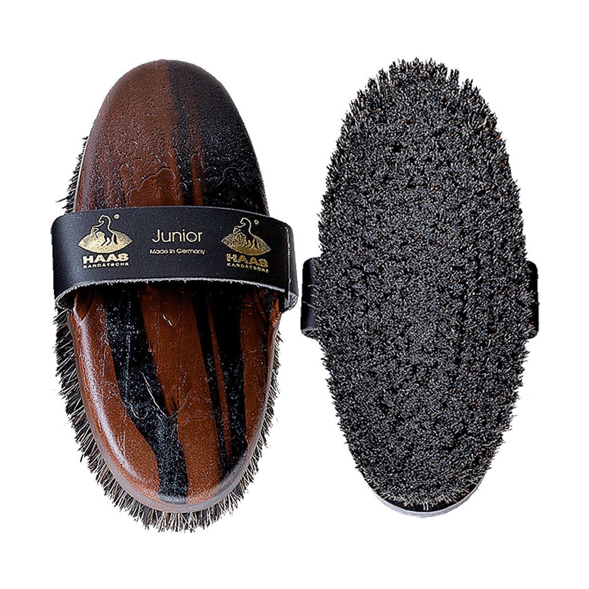 We have used selected horsehair and natural bristles with the smallest amount of synthetic fibres to manufacture this brush. The selected combination of the bristles ensure that this brush has exvellent cleaning properties. The back of the brush is a wooden design with a leather hand loop.