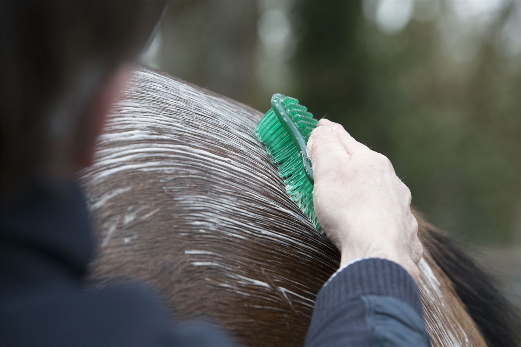 The perfect two-in-one grooming aid, cross between a sponge and a brush. Combines gentle but effective bristle brush on one side with a feel-good rubber scrubby on the other. Can be used dry to sweep away loose hair, dust and mud or wet to lather up and remove grass or other stubborn stains. Gentle enough to use on sensitive faces, legs & even dogs!