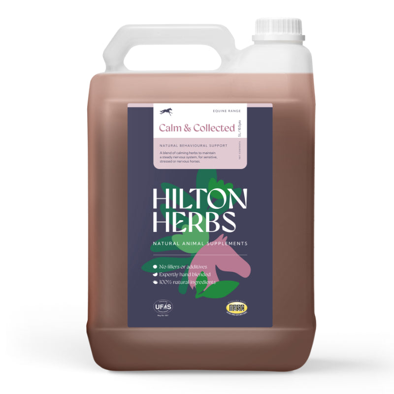 Buy now and give your horse the calm and balanced nervous system support it needs with Hilton Herbs Calm & Collected Gold.