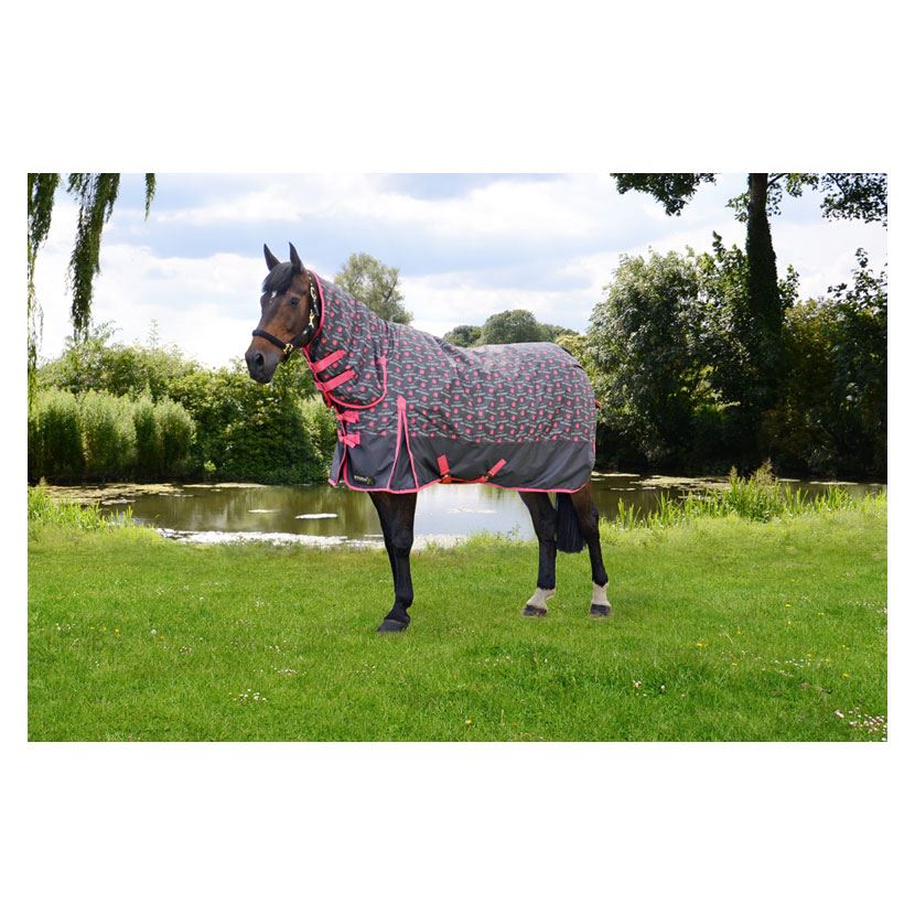 �Keep Calm and Get Muddy� with this limited edition mediumweight turnout rug with integrated contour neck with twin touch tape fastenings. Featuring eye-catching rose gold hardware, 200g fill and 600 denier waterproof breathable fabric. Complete with tail flap for extra coverage, fully adjustable fastenings and deep shoulder gussets to allow freedom of movement to ensure a comfortable fit.