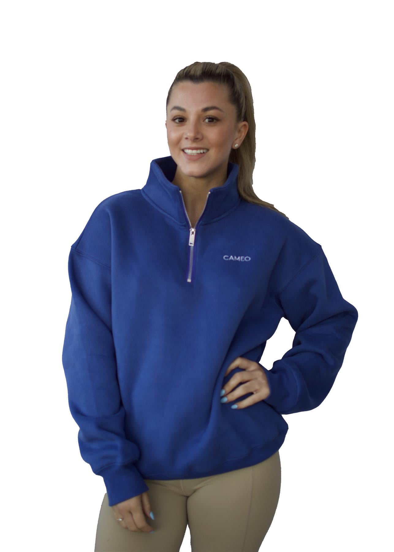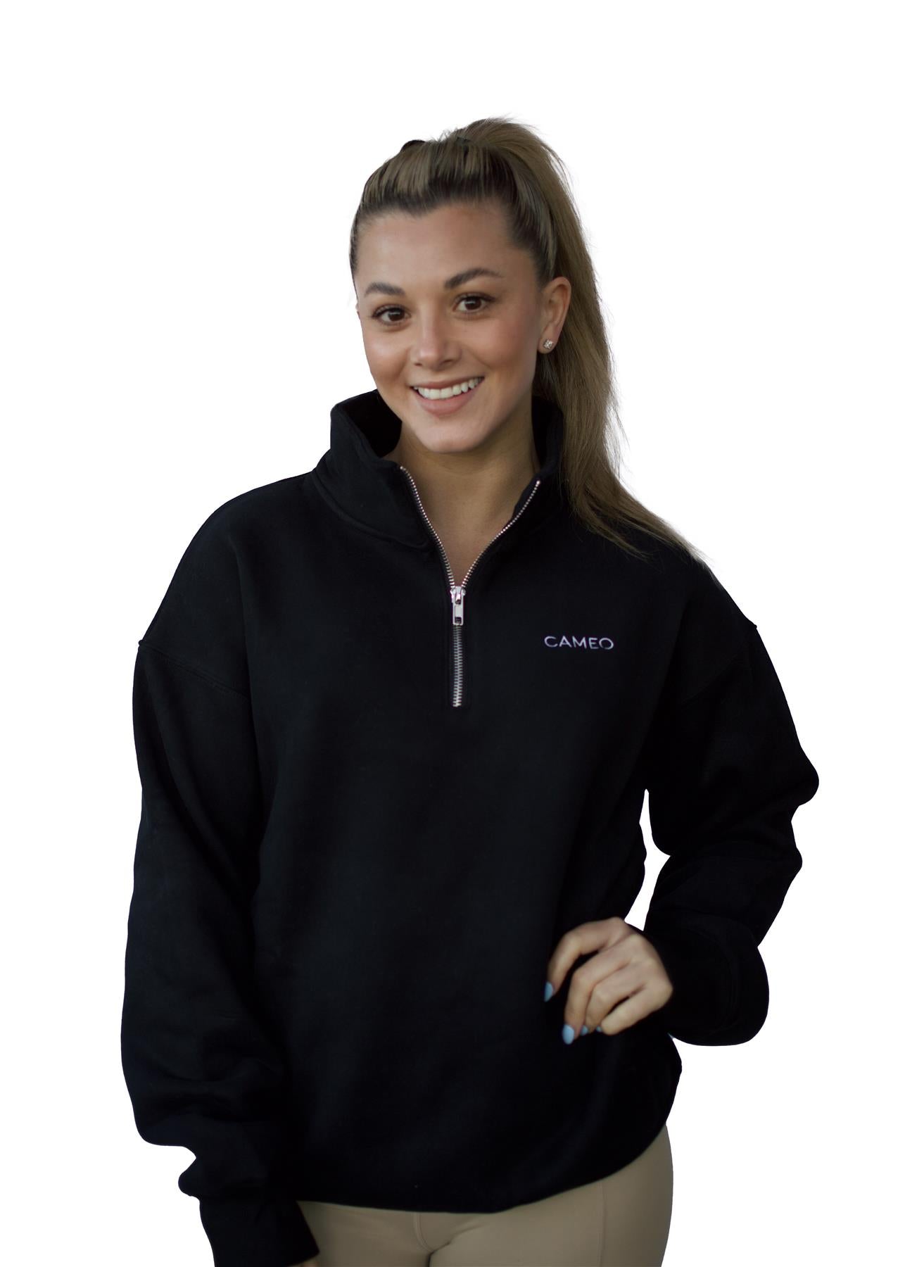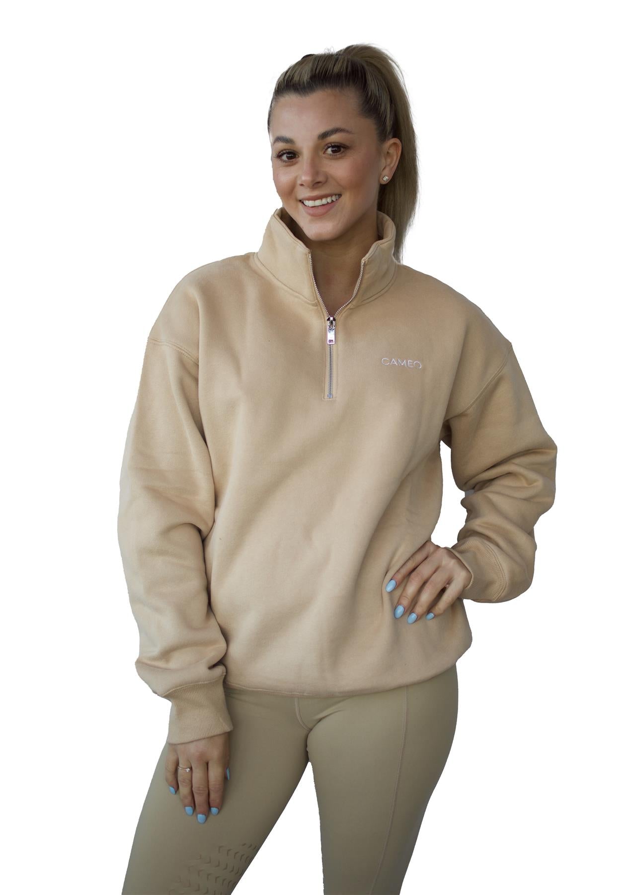 Experience the perfect balance of style and comfort with this essential sweatshirt featuring a chic stand up collar and quarter zip, all adorned with the iconic Cameo branding. Whether you are cozying up at home, heading to the gym or simply seeking an additional layer to keep warm at the yard, this sweatshirt serves all purposes. Designed with a looser fit style and a brushed lining, this item offers the ultimate in luxury and comfort! Stay warm, feel comfortable and look stylish with this essential Cameo sweatshirt.