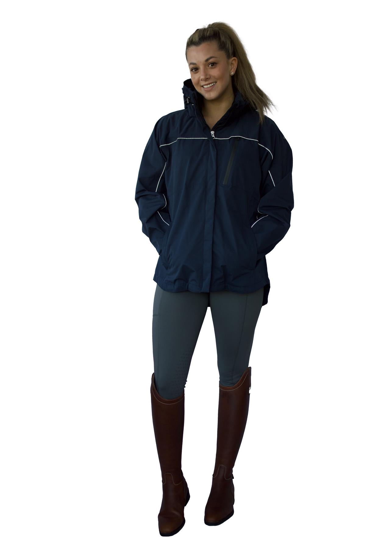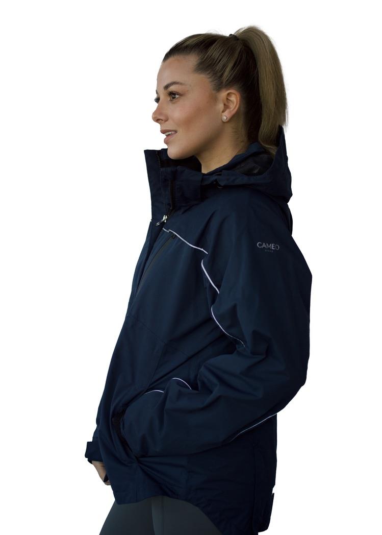 The Cameo Equine Riding Jacket is a waterproof riding jacket, meticulously crafted for paramount comfort and unrestricted mobility. This jacket features two strategically placed zipped vents at the back, accompanied by a fashion-forward thigh cut away, ensuring full coverage and comfort whilst in the saddle.