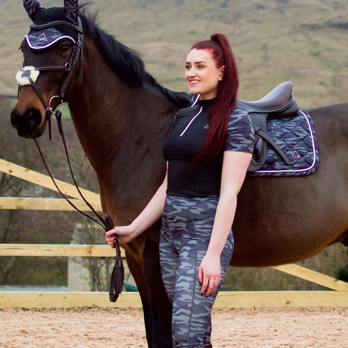Mix and match to create your own signature look with full seat tights, sophisticated hat silk, a plush saddlecloth, and a chic ear bonnet, all available separately. The fashionable Cameo Equine Zest Baselayer is the essential piece that completes your equestrian wardrobe for a trendy matchy look.