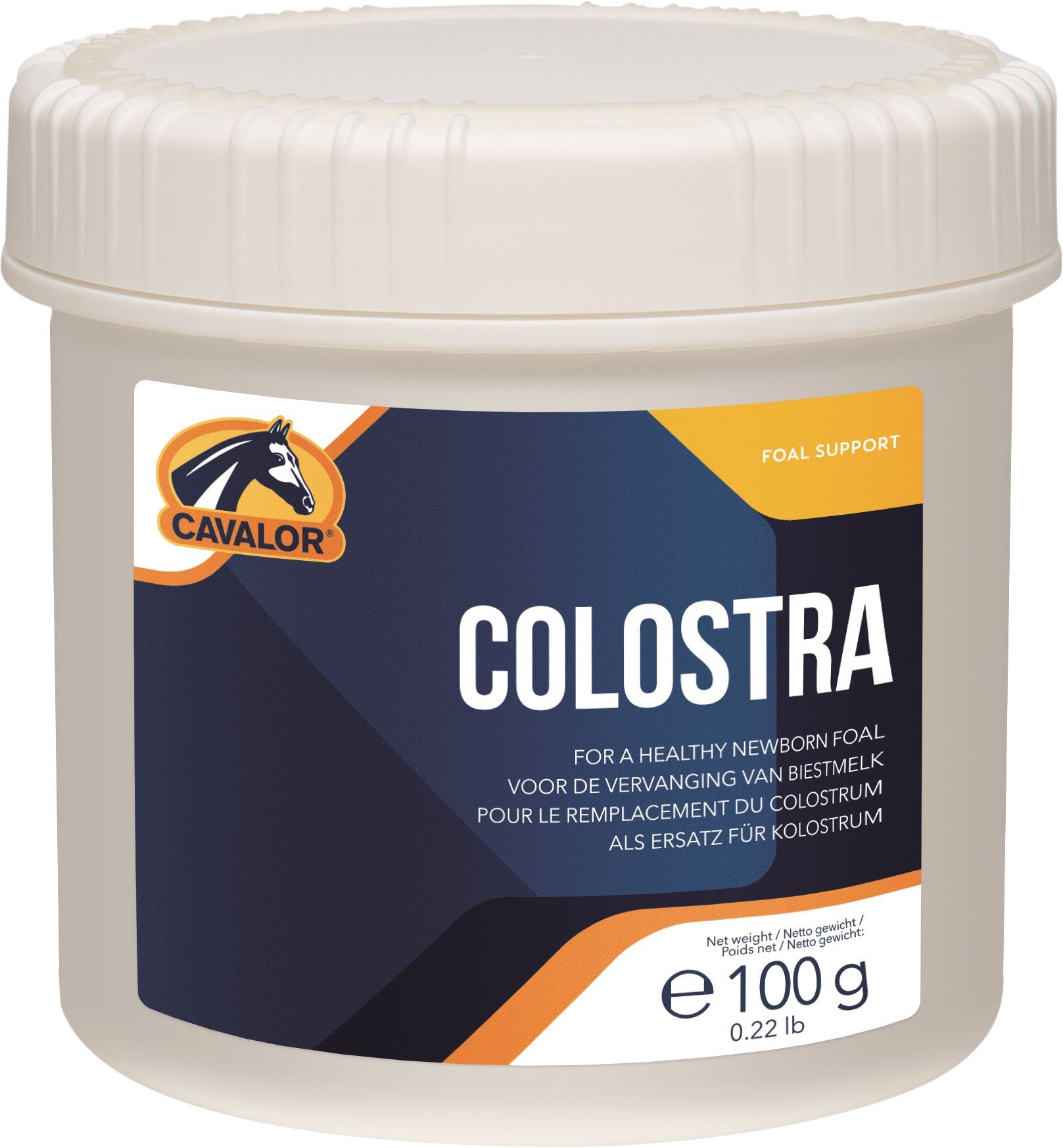 Freeze-dried colostrumIndication for use CAVALOR COLOSTRA 24 is given to newborn foals as a replacement of colostral milk from the mare (orphans or foals of mares with little or no colostrum or colostrum of poor quality).Cavalor Colostra 24 is freeze-dried colostrum which is given to the foal immediately after birth. The use of Cavalor Colostra 24 increases the content of immunoglobulins in the blood. This makes the foal better able to combat pathogens during the first week of life- when it develops its own immune system. The danger of an immunity gap will be smaller- which helps protect the foal against infection and disease.Composition and application Cavalor Colostra 24 contains natural substances (freeze-dried colostrums)- which are essential for healthy growth in the foal. It is recommended that you keep a stock of Cavalor Colostra 24 and Cavalor Hyppolac.Cavalor Colostra 24 is IBR-negative and safe for use with all foals and contains at least 30% of immunoglobulins.Dosage To supplement the mare's shortage of colostral milk: administer 100 grams/ 3-5 oz of colostrum powder to the foal within 24 hours after birth.To replace a total lack of colostrum: administer 100 grams of CAVALOR COLOSTRA 24 within 6 hours after birth and repeat this administration after 12-16 hours.Put 100 grams CAVALOR COLOSTRUM 24 into 200 ml of 0-2 l liters of milk replacer (CAVALOR HYPPOLAC) or water. Stir well until the powder is completely dissolved. Serve at a temperature of 36-37�C.PackagingJar containing:- 100 grams colostrums