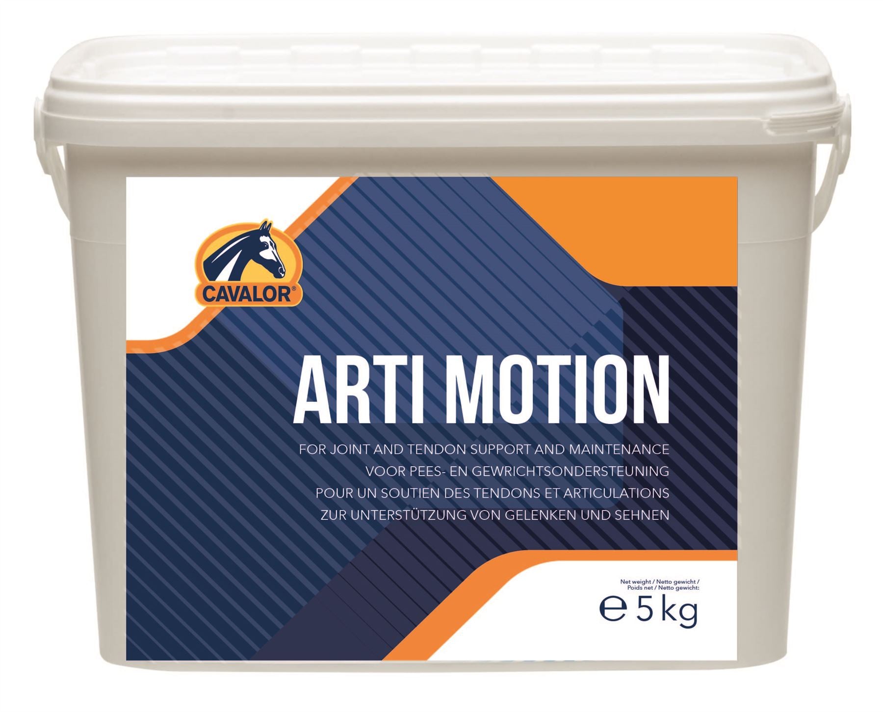 To keep joints in good conditionIndication for useCAVALOR Arti Motion contains nutrients that are known to have positive effects on joints. It is indicated for use in those cases when it is not necessary to use joint products that include ingredients with anti-inflammatory properties:- young and growing horses- old horses with chronic joint problems- sport horses in periods of heavy exertion (e.g.- competition season)- after supplementation of Cavalor Arti MatrixThe nutrient composition of Cavalor Arti Matrix is more focused on the nutritional support of horses with acute- severe or chronic problems. We recommend supplemening Cavalor Arti Matrix during the first two months if such problems occur.Composition of the productCavalor Arti Motion contains glucosamine- chondroitin sulphate- collagen II and MSM- plus minerals important in joint health such as copper- zinc and manganese. It also contains vitamin C.Dosage and safetyMix in the daily feed- Ponies: 30 g/ 1.06 oz- Sporthorse: 60 g/ 2.11 oz