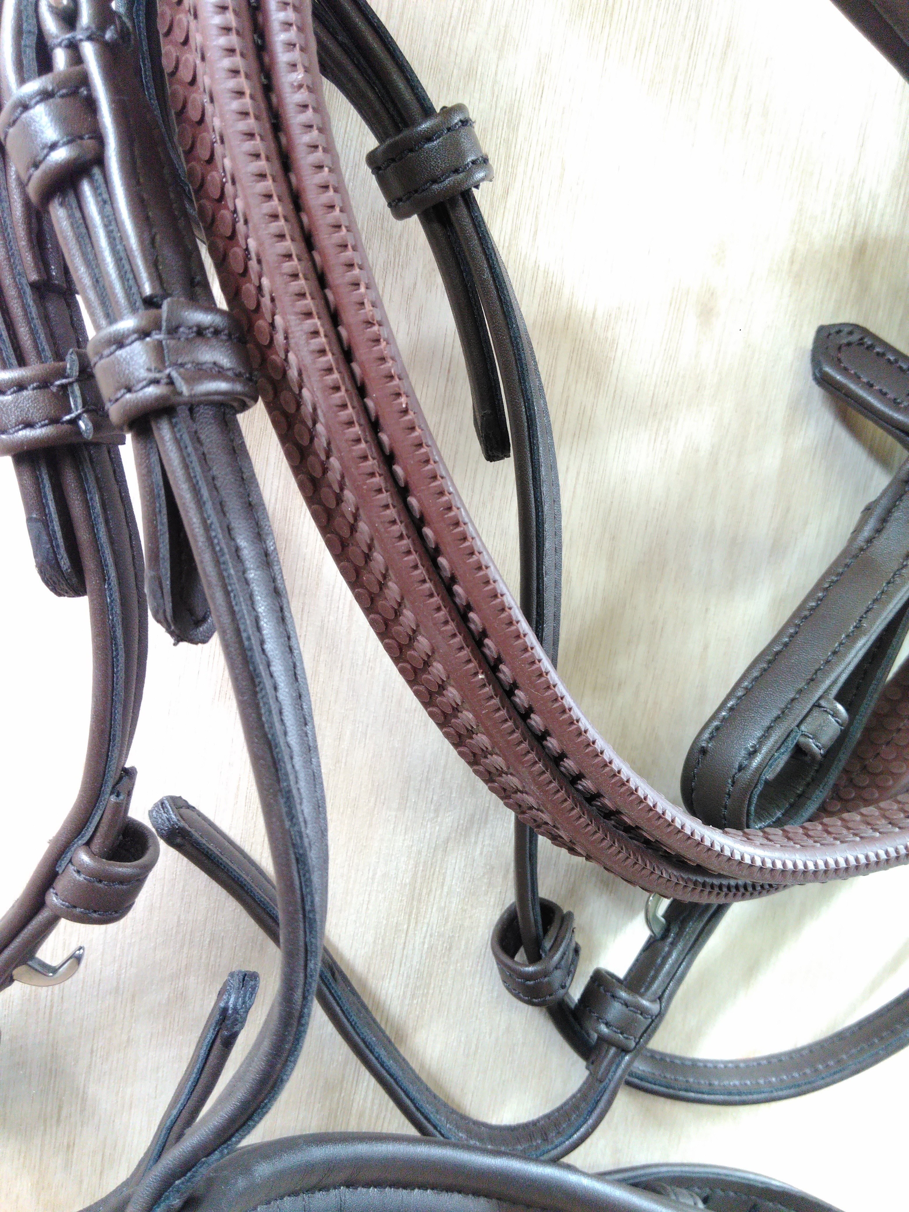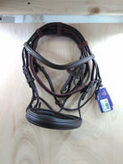 The Collegiate Syntovia+ Padded Raised Cavesson Bridle is designed for comfort and style, featuring a padded noseband and browband for your horse's ease. This bridle is brand new but has a minor defect with one broken keeper, making it a great option for those seeking quality at a reduced price.