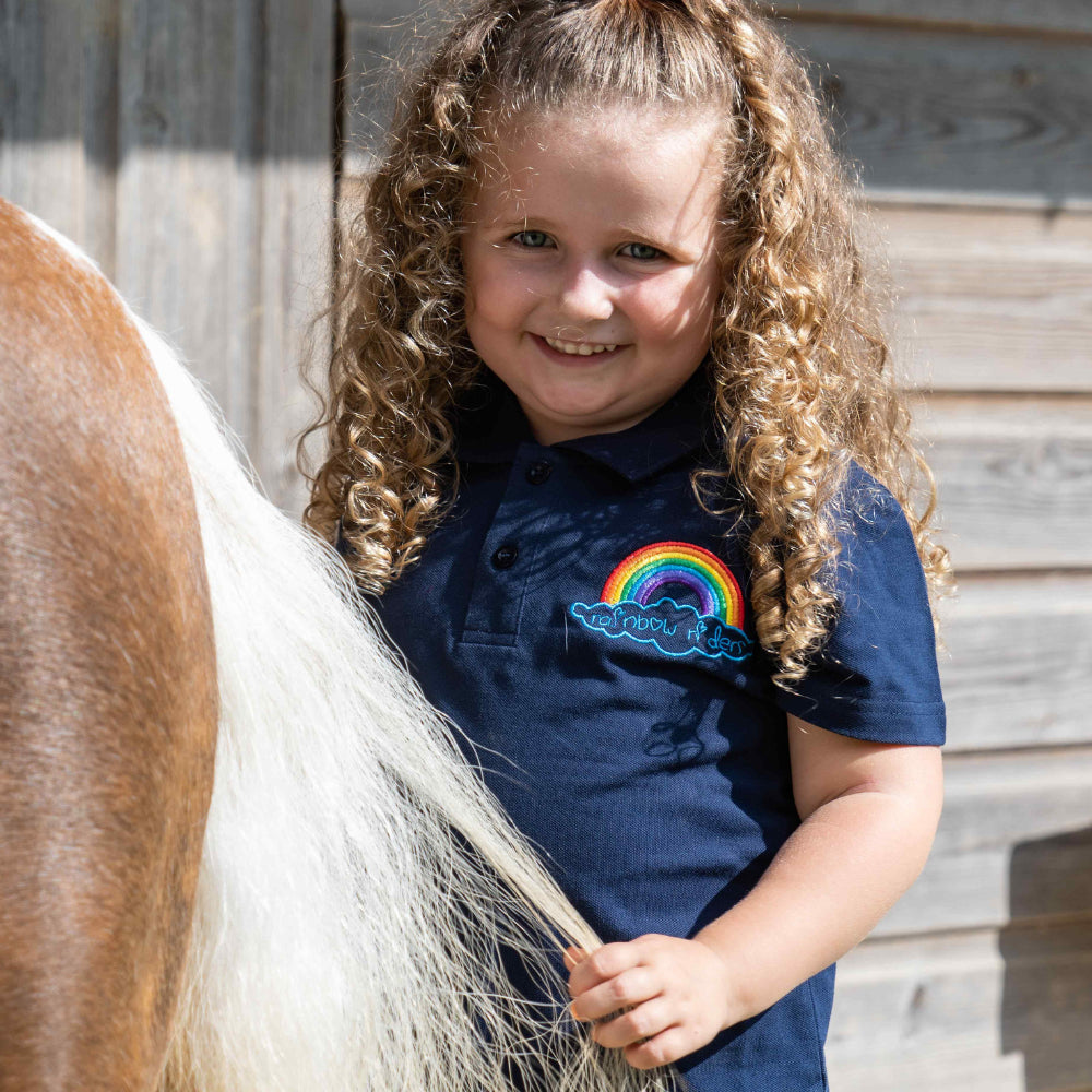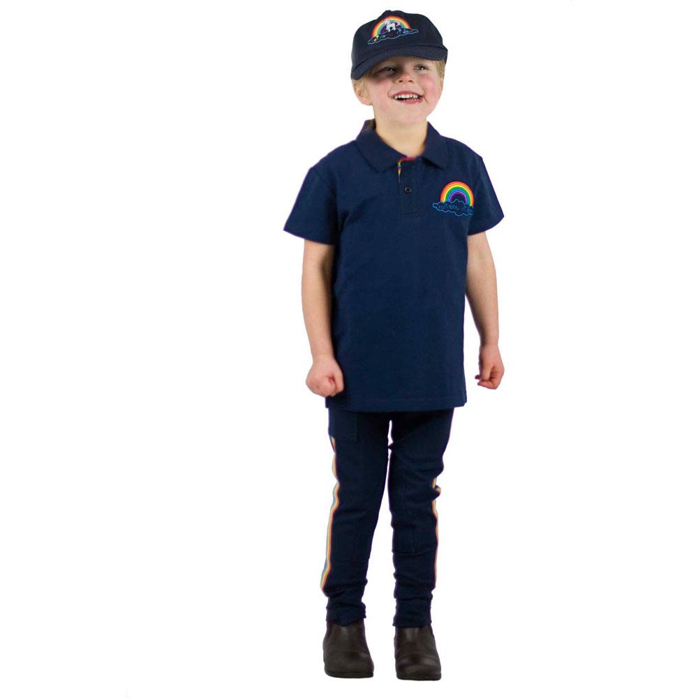 Lovely navy polo shirt with embroidered Rainbow Riders logo