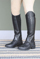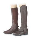 Experience a blend of style and functionality with the Moretta Synthetic Gaiters for children by Shires. These gaiters sport an incredible synthetic fabric that impeccably mimics the appearance and texture of authentic leather. Featuring genuine suede inserts located at the inner calves, these gaiters offer exceptional comfort and support. What sets them apart are their stretch inserts and dressage cut tops that adapt to the shape of the rider's legs and provide a sleek look. In addition, they are equipped with full-length zips for easy access and a quick change. These gaiters also feature practical elastic foot stirrups, stretch zip tidy straps and bound edges providing secure fitting and durability. Don't miss out on a riding experience like no other with these fantastic gaiters, order yours from Just Horse Riders today.