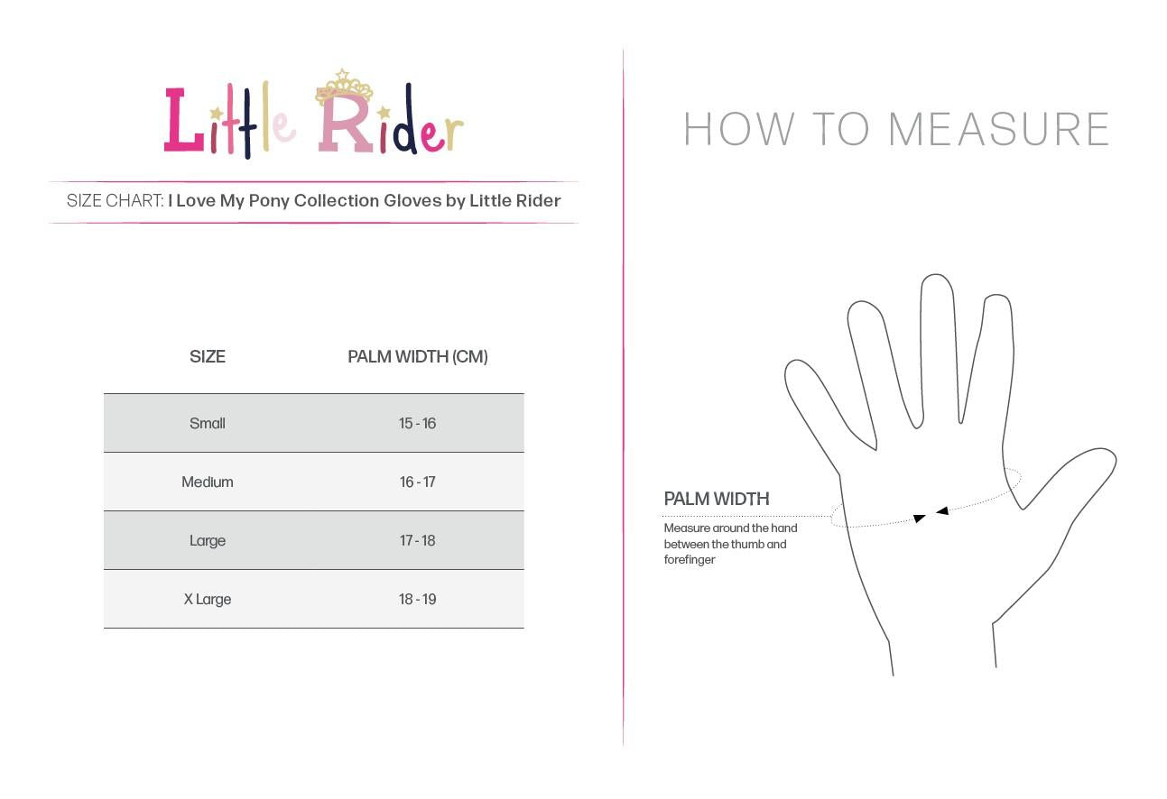 Smart and practical, these must have gloves are part of the �I Love My Pony� collection by Little Rider! Made using Amara grip palms with reinforced rein fingers, rubbing is prevented and comfort is provided with an elasticated cuff, snug and secure fit, and touch-tape wrist straps for easy fastening. Match with the rest of the collection.