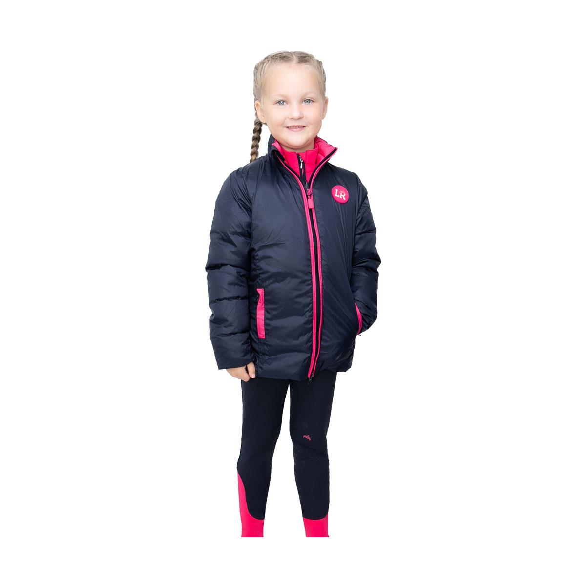 The Analise Padded Jacket is ideal for keeping you warm on a chilly day and is completely reversible so you can choose either Pink or Navy to match your outfit!. The faux down and feather free filling holds the heat close to your body, keeping you snug and warm. This lightweight jacket also offers insulating warmth whilst giving the flexibility to move around. The contrasting lining and piping along the double zip line offers a stylish look along with two hidden zip pockets. Completed with the Little Rider emblem.�
