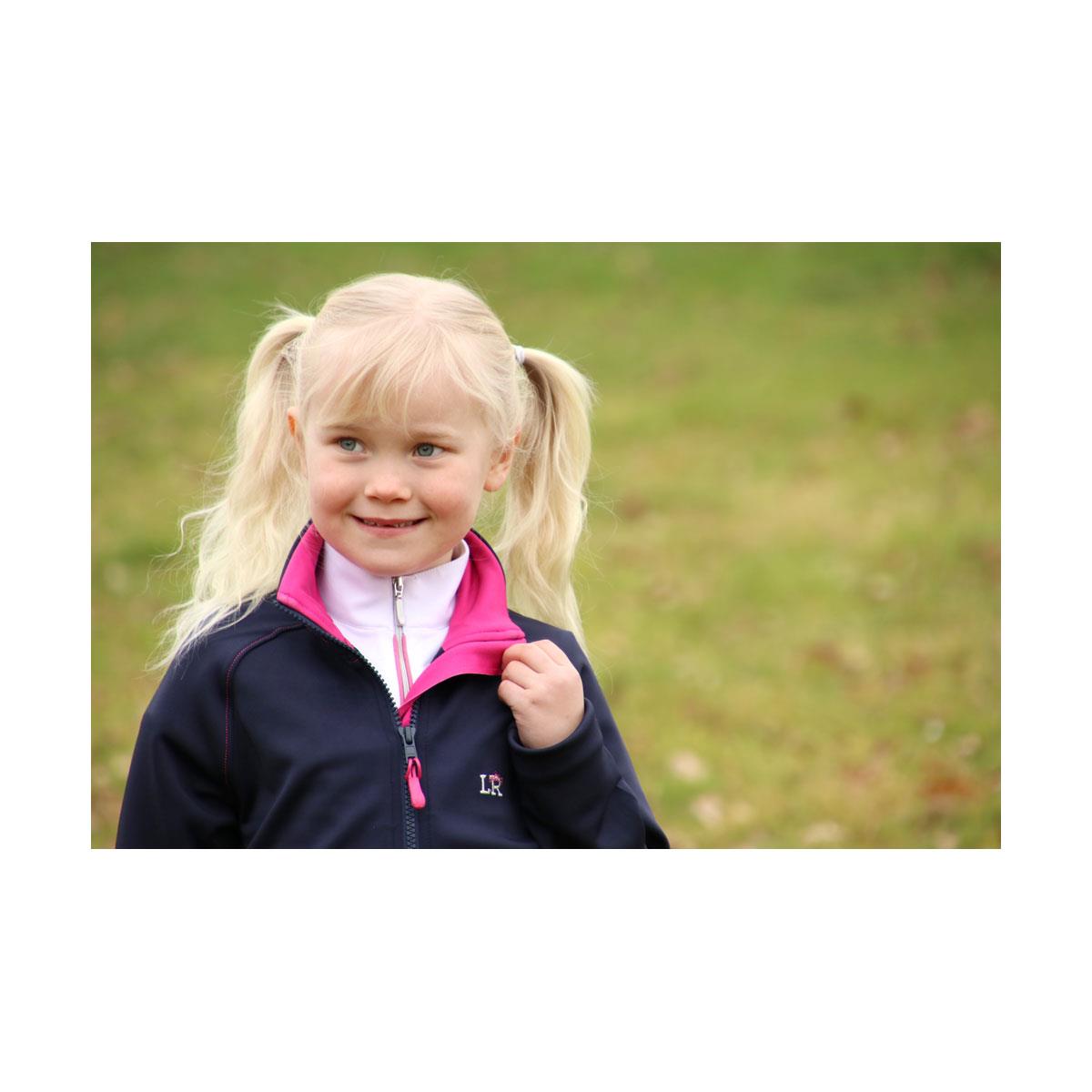 This smart jacket offers the ultimate in flexibility and comfort as the soft fabric is lightweight and quick drying. A two-way pink zip is easily adjusted in the saddle or on the yard and two front pockets provide useful storage. This smart jacket with stand-up collar will protect your little one from the elements, thanks to the windproof and showerproof outer. Finished with pink stitching and Little Rider emblem to the chest.