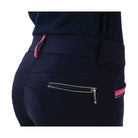 These breeches are made from bi-stretch material for ultimate flexibility for both in the saddle and around the yard. The silicone knee patches allow for extra grip, and the contrasting pink no bulk stretch hem ankles fit seamlessly under riding boots. There are two pockets on the front and two zip pockets on the back which gives you the option of how to carry your possessions, and the contrasting pink details look really smart. These breeches look lovely when worn with the matching Eugenie set.