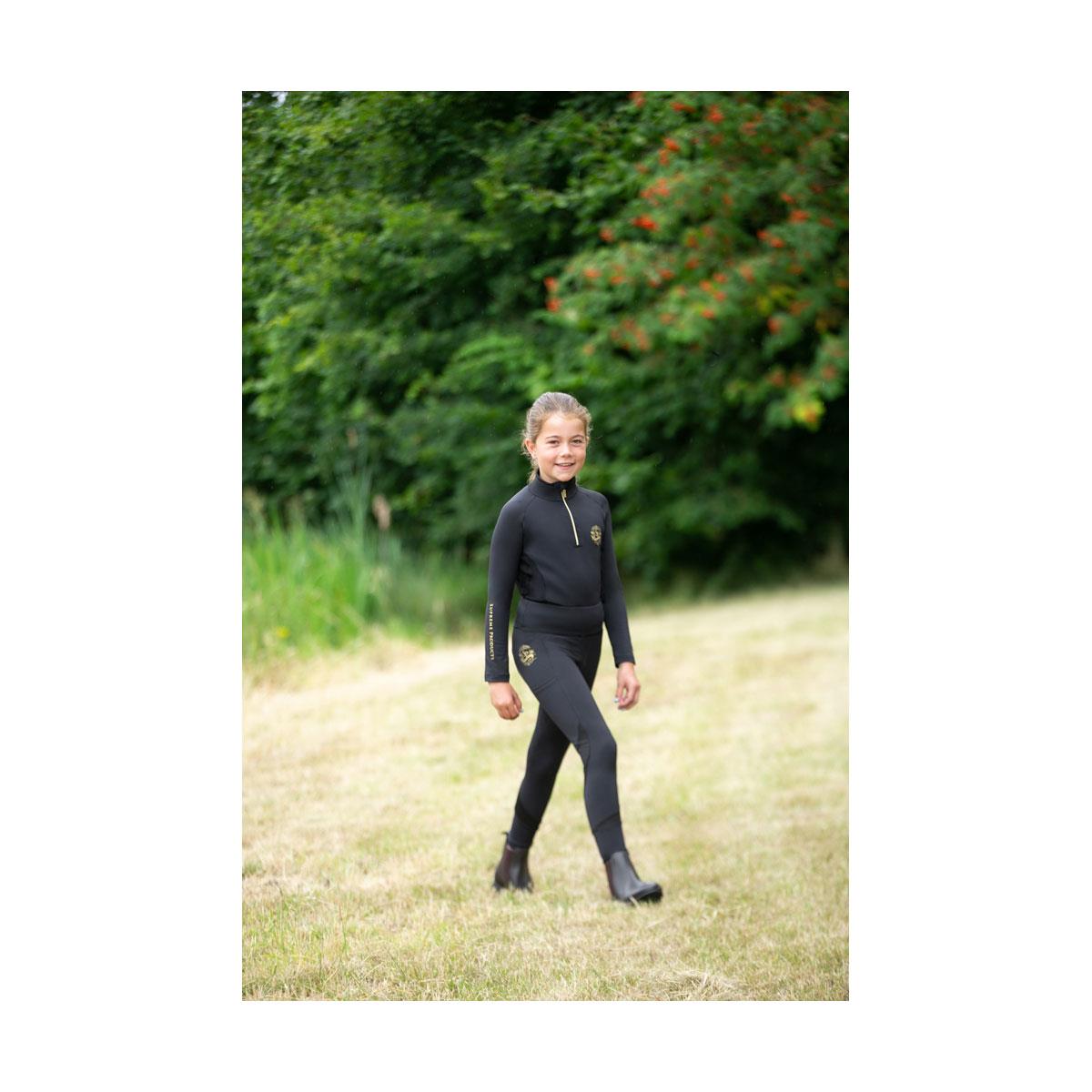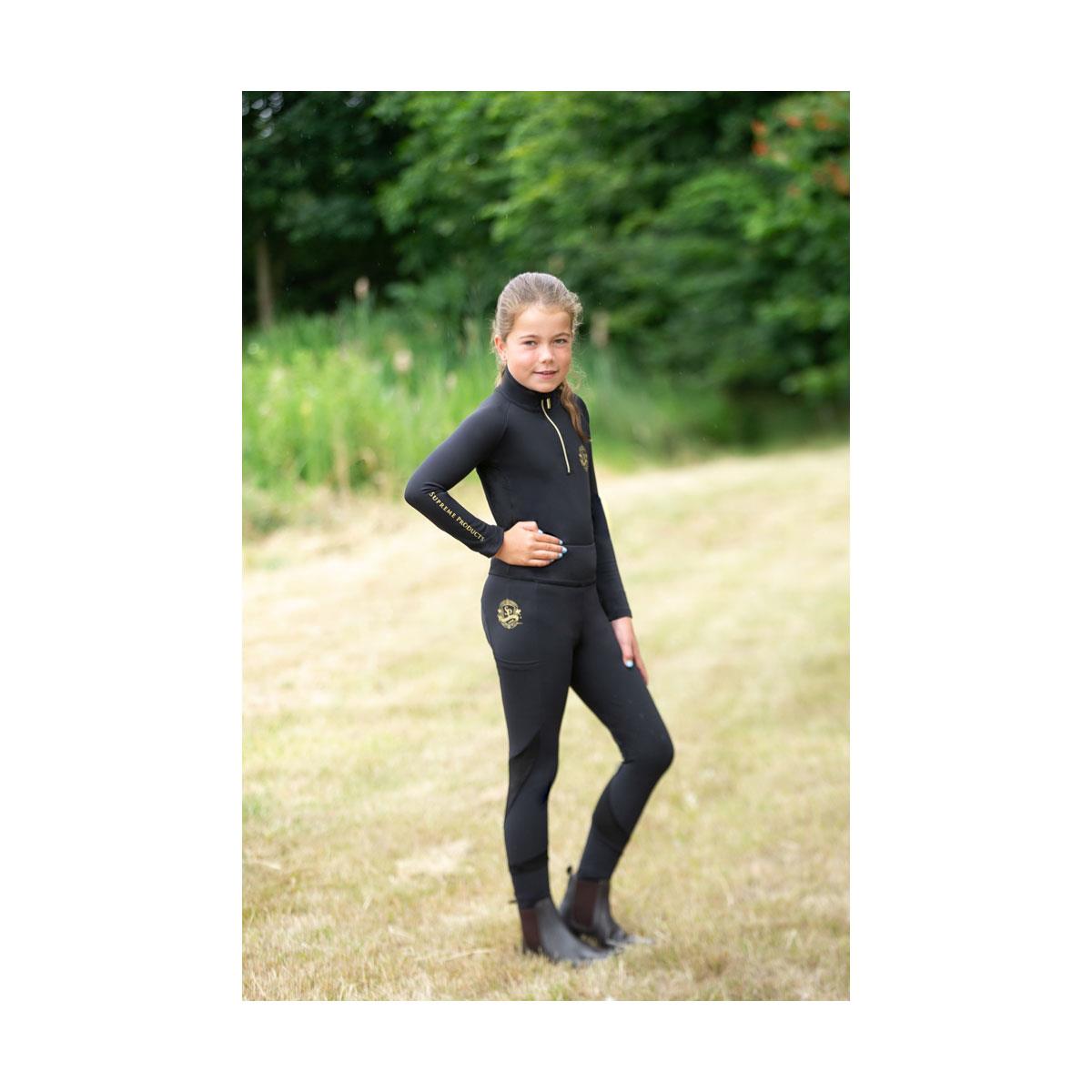 Designed with performance and comfort in mind, the Active Junior Show Rider Leggings are the perfect choice for children when riding and on the yard. The leggings provide maximum movement in and out of the saddle with advanced stretch technology fabric. These high waisted, durable leggings also benefit from mesh detailing for added breathability. The leggings feature a handy pocket, no bulk ankles and silicone grip knee patches for extra security in the saddle. They are beautifully finished with the Supreme Products signature gold detailing. Wear with the matching base layer for a timeless look.