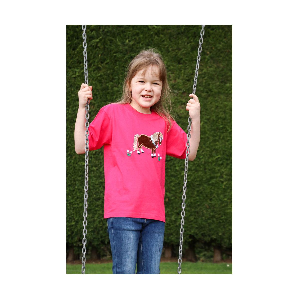Childrens Flora Pony T-Shirt with an exquisite girls applique design on a vibrant hot pink colour.
