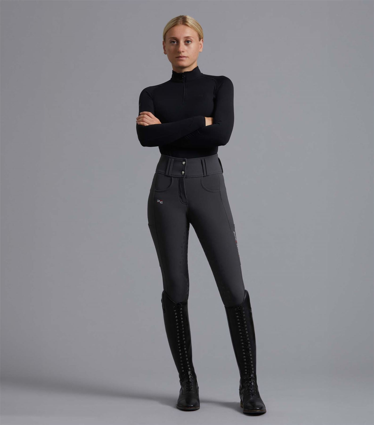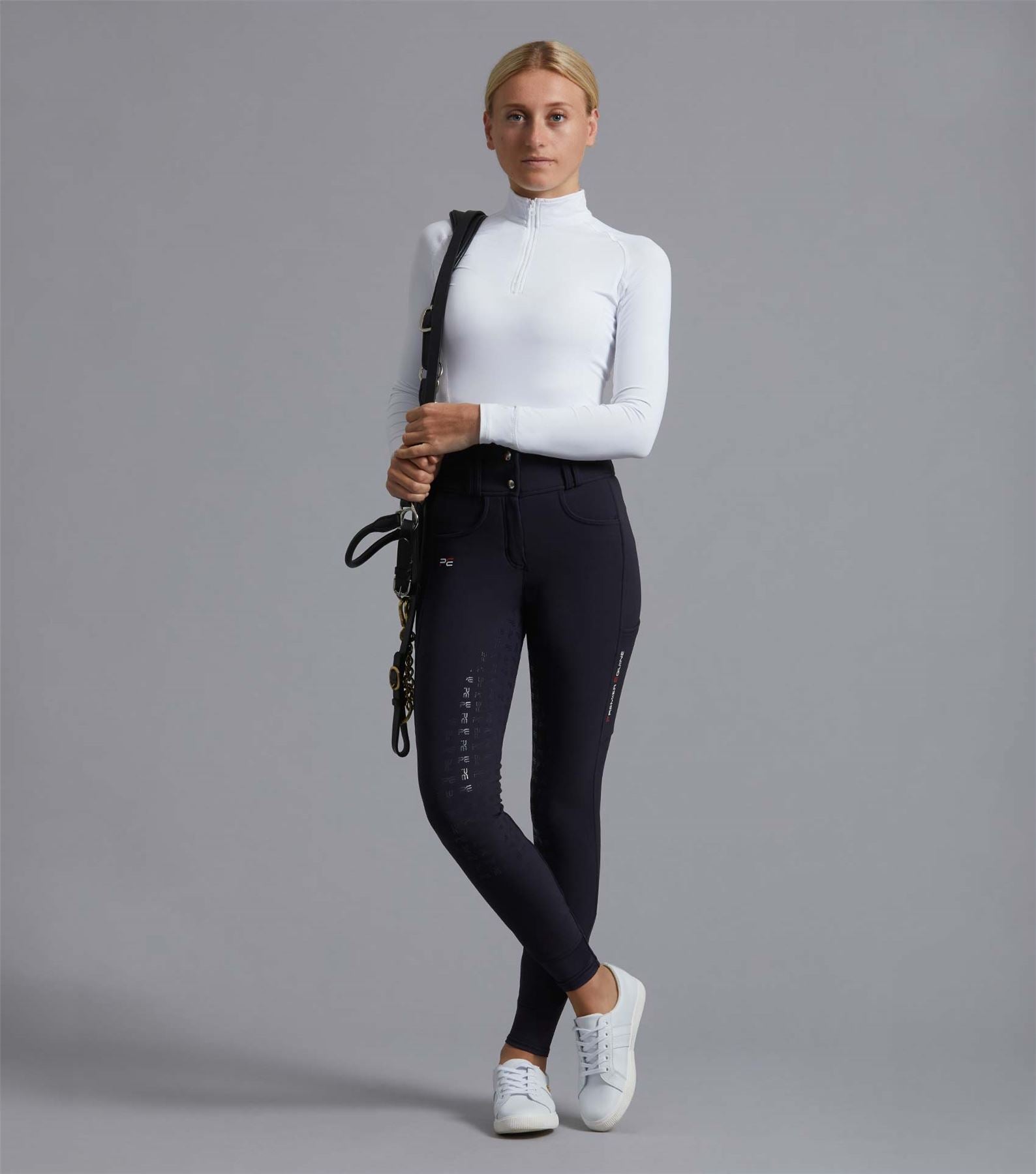 Engineered from exemplary fabrics with water repellent properties, our Coco II Breeches are designed to endure the day-to-day activities of the hardworking equestrian. This classic fit is timeless and makes a perfect addition to any equestrian�s wardrobe. Our technically advanced four-way stretch material enables optimum comfort and flexibility in and out of the saddle. The high waistband aids support to the wearers core and helps secure the breeches in place. This, combined with a full gel seat increases grip in the saddle makes for a practical all round breech. Two front pockets add to the practicability of the breeches, whilst two rear button fastened pockets enhance the shape of the breech. The Coco II Breeches also feature two strategically placed phone pockets on the wearers mid-thigh, to avoid compromising on movement. A slider fastening secures the breeches and the waist features belt loops. Whilst the PE branding boasts quality, the Coco II is an eye-catching breech that displays sophistication and sporting class. These breeches are functional and tailored to the everyday needs of the modern equestrian.