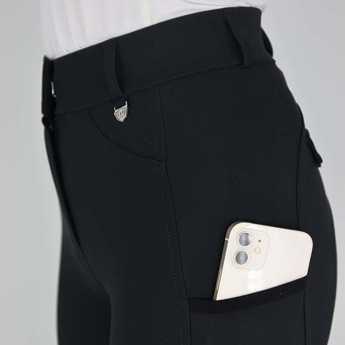 The high waistband and flowing lines give a flattering silhouette in comfortable 4-way stretch fabric to give a perfect fit and great Performance in the saddle.