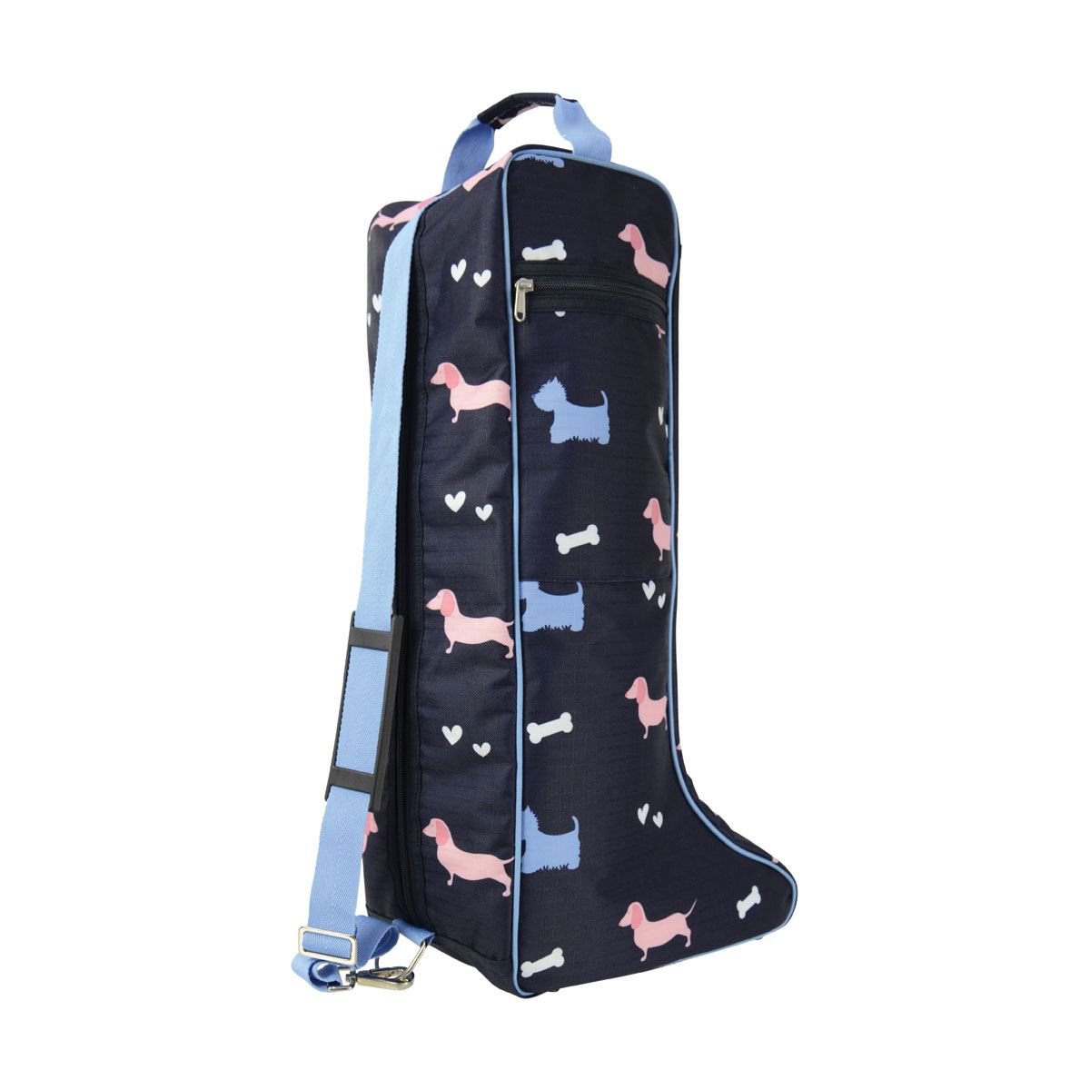 Ripstop and waterproof, this stylish dog print boot bag will protect your boots and ensure they stay dry and clean. Featuring a double zip fastening, zip side pocket, grab handle and over the shoulder carry strap, this bag is a handy way to carry your long boots.