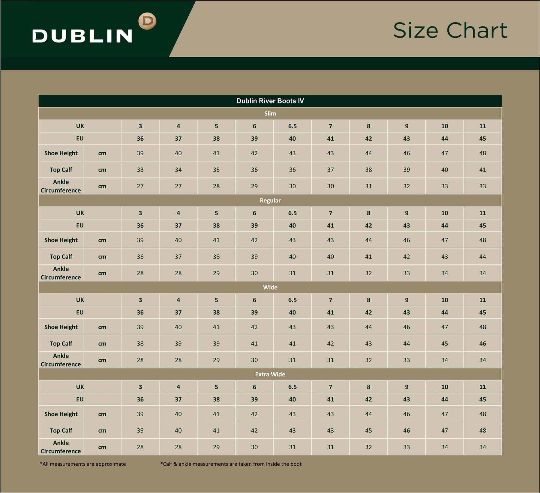 The Dublin River Boot 4 comes in a wide range of sizes, from UK size 3 to 11, and offers multiple calf widths, including a new slim calf option. Whether you have wide or slim calves, you can find a perfect fit.