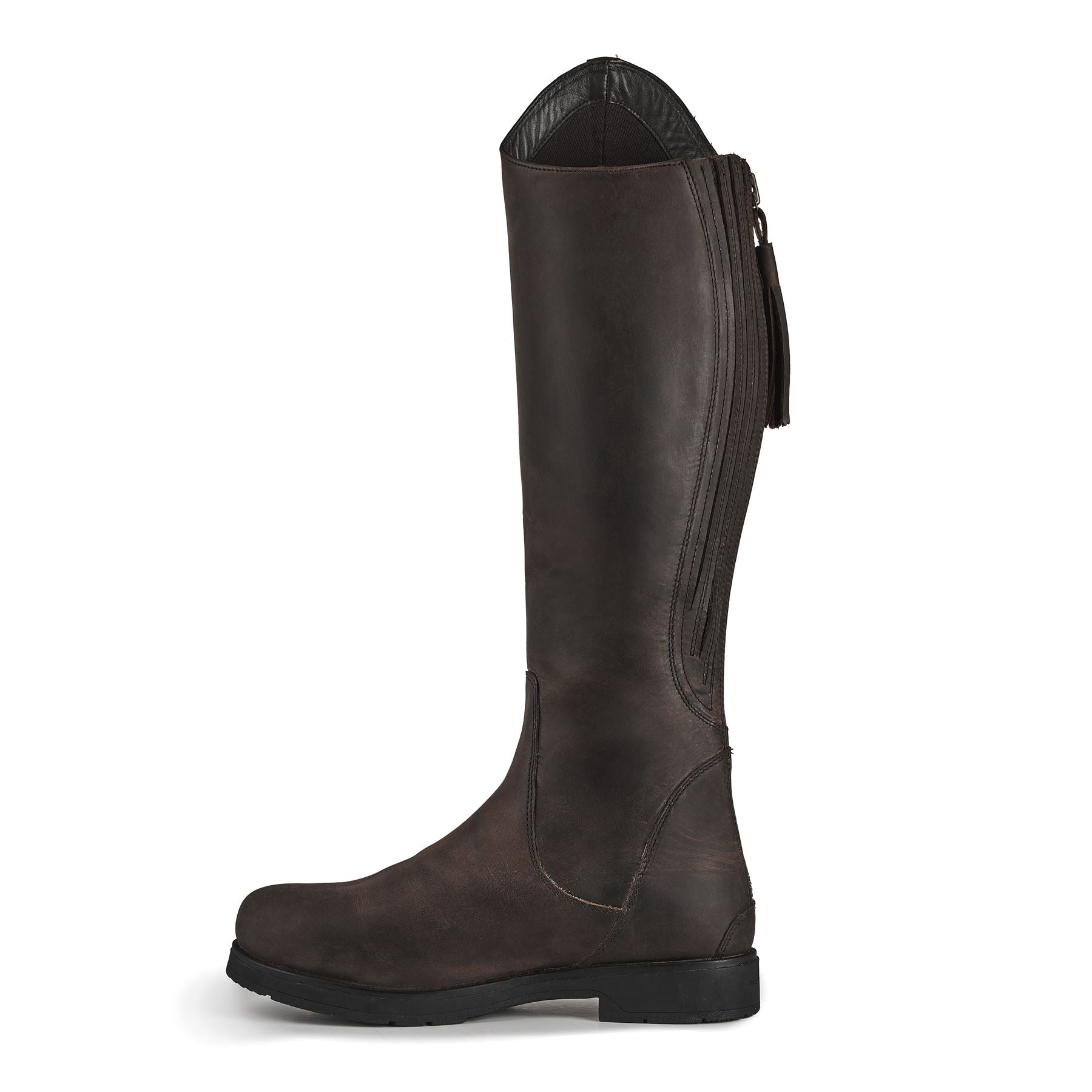 Refined aesthetics and practical credentials give the Renata plenty of wear options. Designed with a stirrup compatible sole, the boots are equally suitable for wear in or out of the saddle. Waxed deep brown leather dries quickly and remains flexible, a waterproof membrane prevents water penetration into the boot. WickAway linings draw moisture away from the skin to keep feet warm and comfortable. An excellent fit is ensured by a choice of calf widths and a stretch leg insert. Key features: FLEXDRY water repellent leather. WickAway stay dry lining. Waterproof membrane sock. UltraFit leg panel. YKK zip with waterproof gusset. ActiveFlex insole. Moretta AllTerrain outsole. Steel shanks. Stirrup compatible.