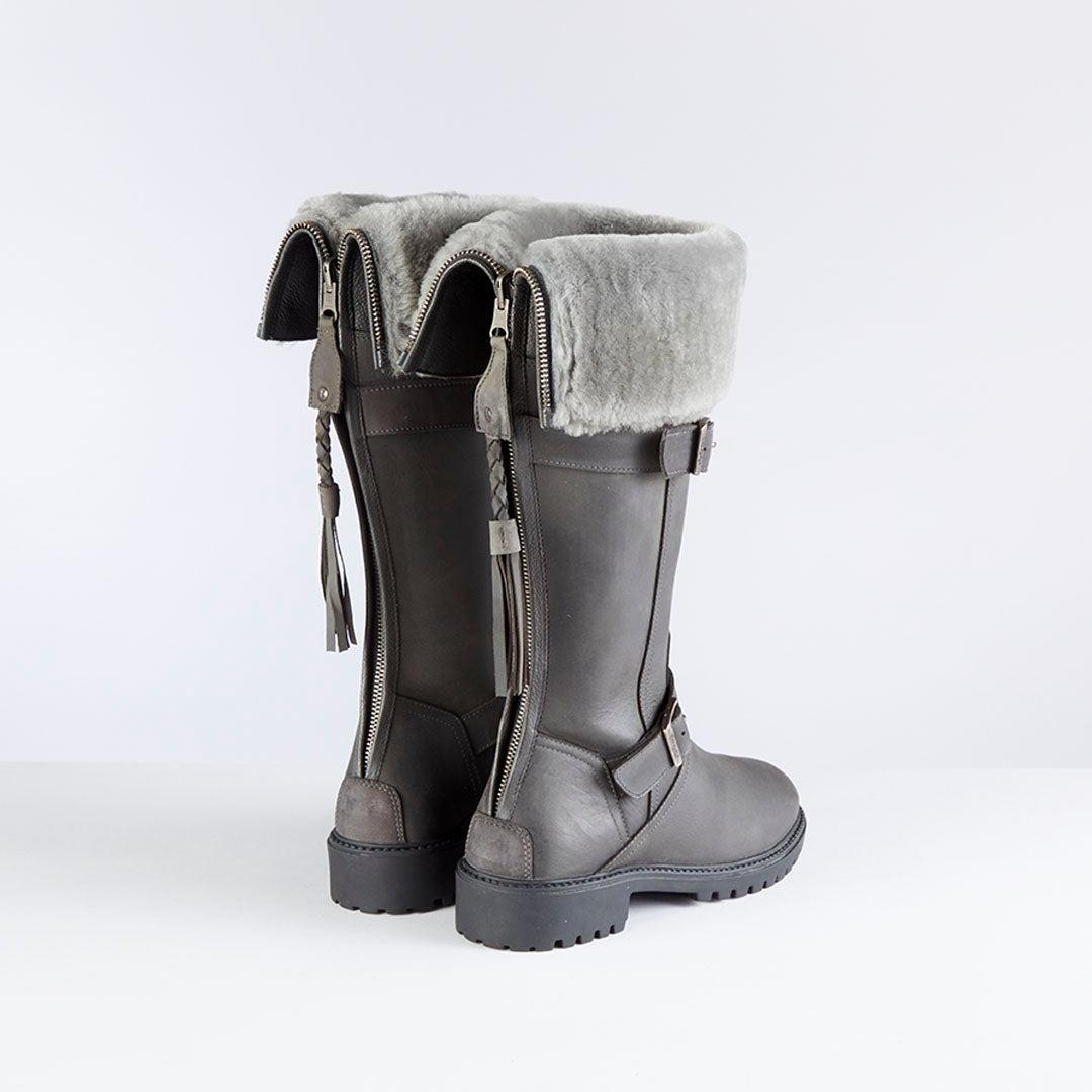 This modern biker style country boot has been produced in a quality waxy leather and the finest quality real sheepskin with fold down collar.