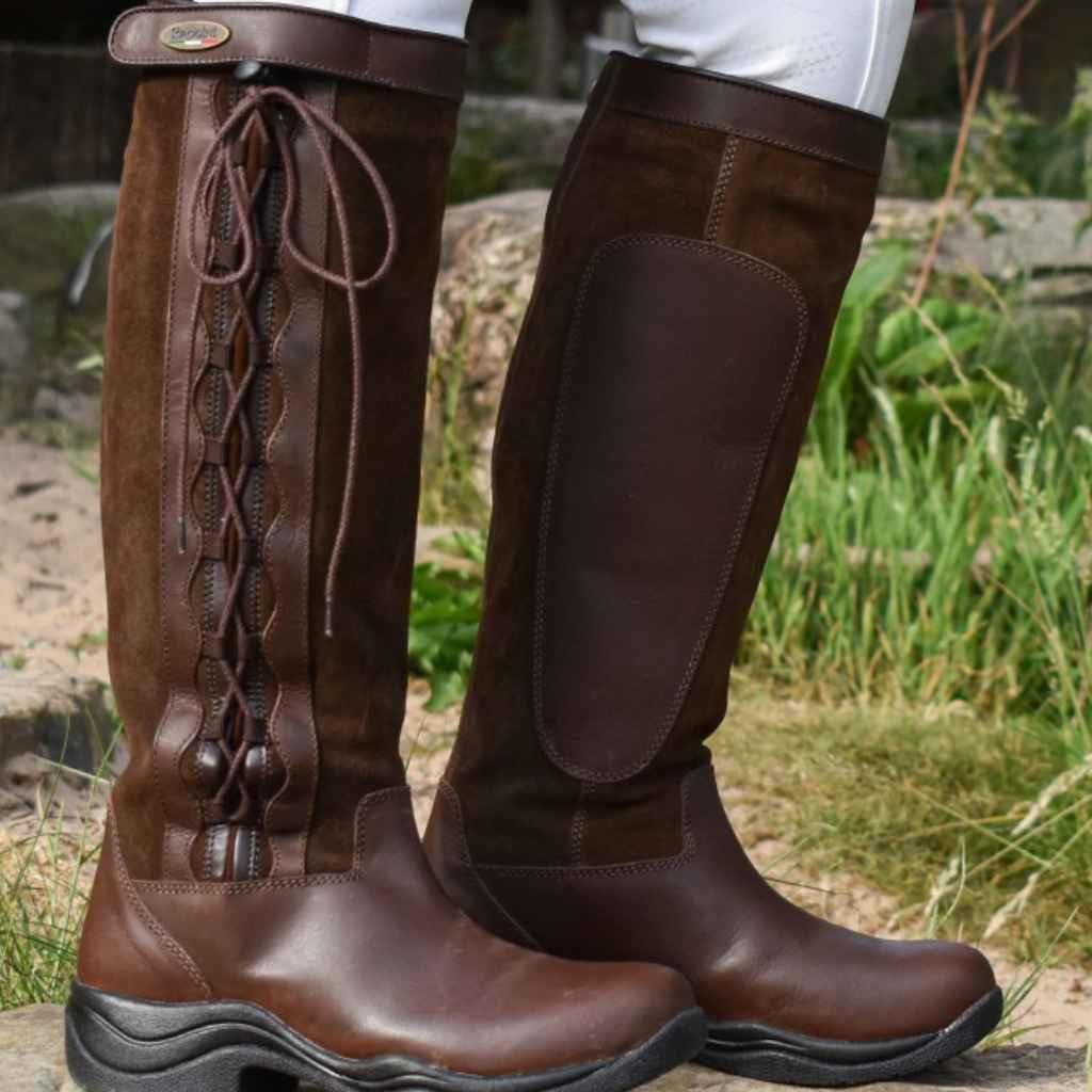 Designed to be a seamless transaction between a riding boot and a country boot. 2cm taller than our usual country boots to stop the top catching on your saddle. The lace up sides offer a wide adjustment so you can adjust the boot easily depending on your choice of legwear and socks, and the foot and ankle is lined with a breathable, waterproof membrane and perspiration control lining. Full leather with suede up the leg.