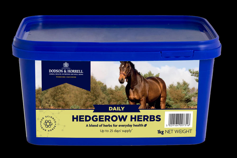 Shop now at Just Horse Riders for the Dodson & Horrell Hedgerow Herbs, a delightful mixture of natural herbs including nettle, oregano, mint, thyme, rosehips, dandelion, and red clover. The health benefits of these herbs have been widely recognised for centuries. In the wild, horses would naturally select specific plants to help maintain their overall well-being. However, as pastures have evolved over the years, many of these beneficial plants have become less accessible. This is where our delicious blend comes into play. By adding this palatable mix to your horse's feed, you can ensure they receive all the natural goodness that nature intended. With our quick dispatch and delivery and top-tier customer service, your horse's health and happiness is just a click away. Any questions? Feel free to contact us.
