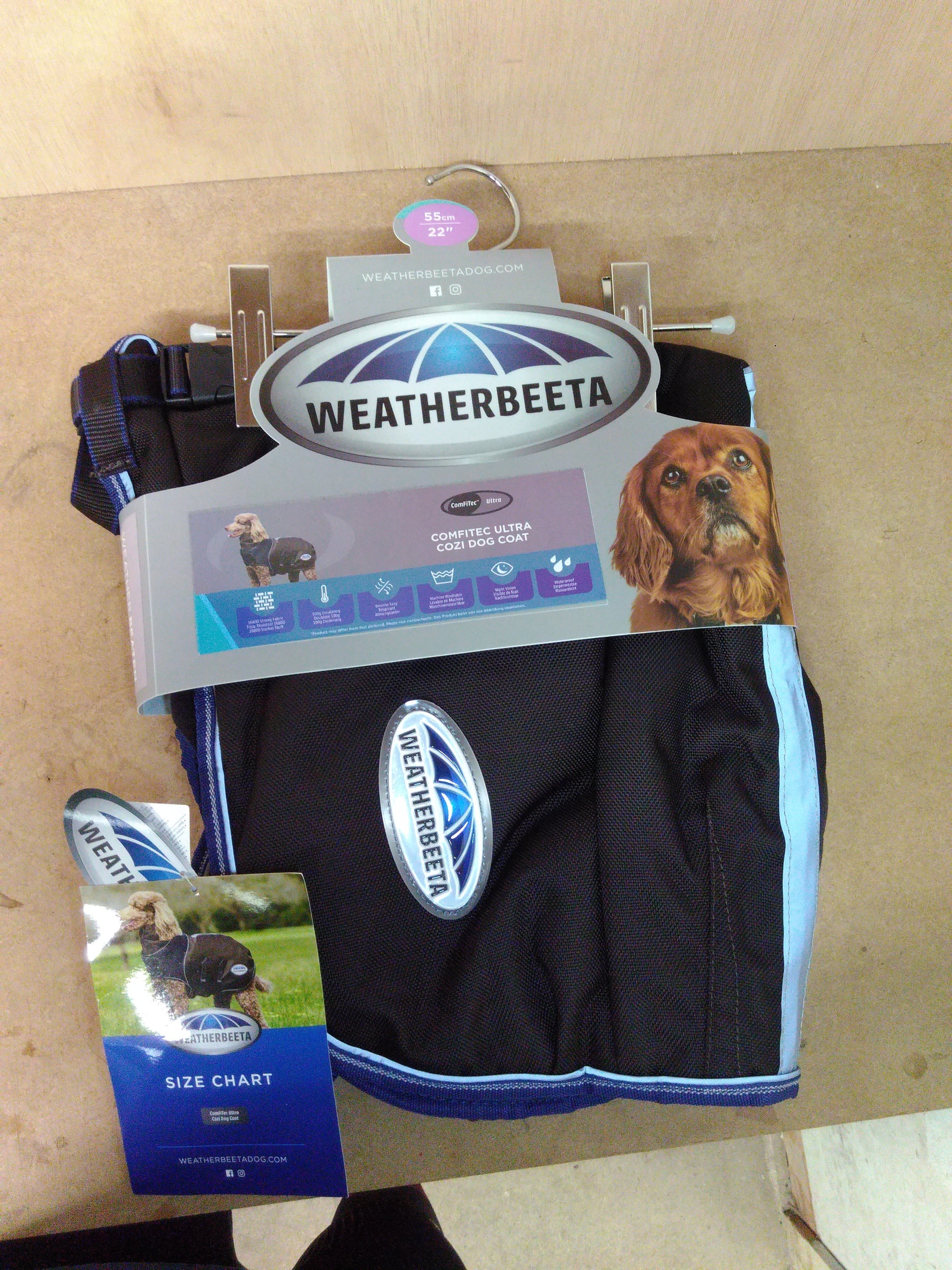 The Weatherbeeta Comfitec Ultra Cozi Dog Coat is designed to keep your furry friend warm and comfortable during chilly walks. With its stylish charcoal, blue, and white colour scheme, this coat features a snug fit and durable materials, ensuring your dog stays protected from the elements. Perfect for dogs measuring 55cm/22" in length, it combines functionality with a modern look.