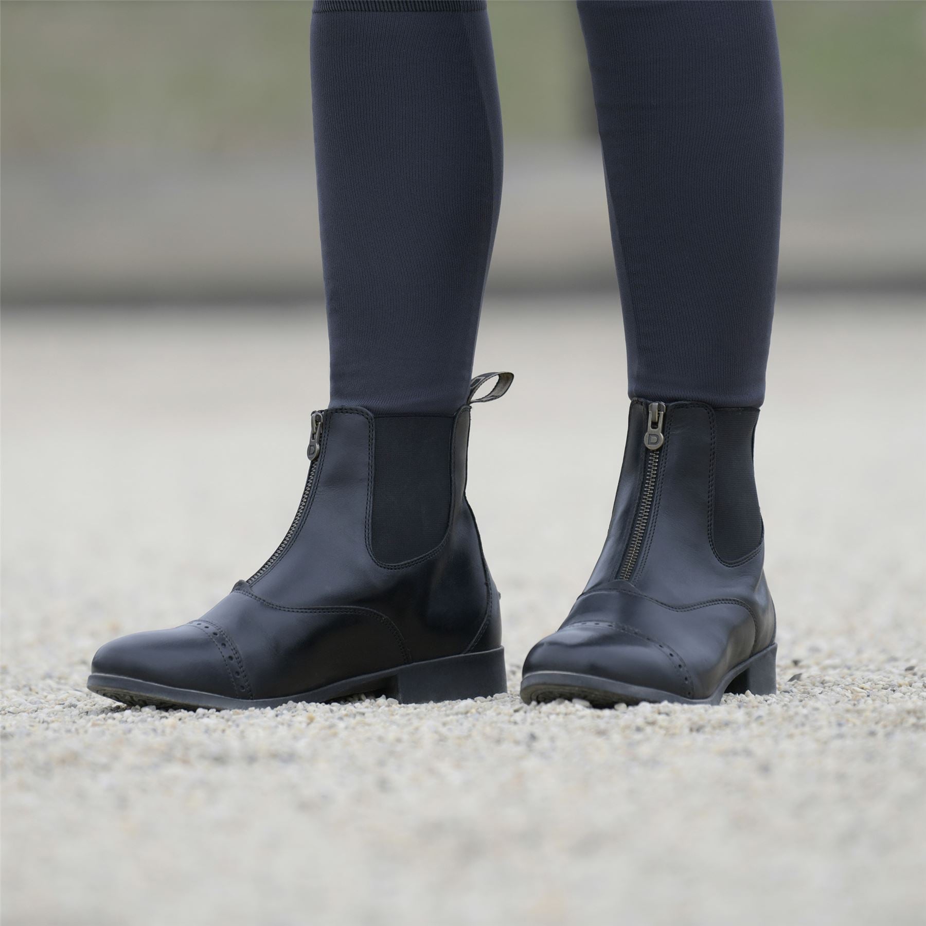 The Dublin Foundation Zip Paddock Boots II are a full grain quality leather boot for everyday use, with stylish punched toe cap and branded nylon pull tab. YKK zip allows for easy on/off, with a Dublin footbed with EVA cradle for comfort and moisture control. The rubber outer sole is designed for grip and endurance.