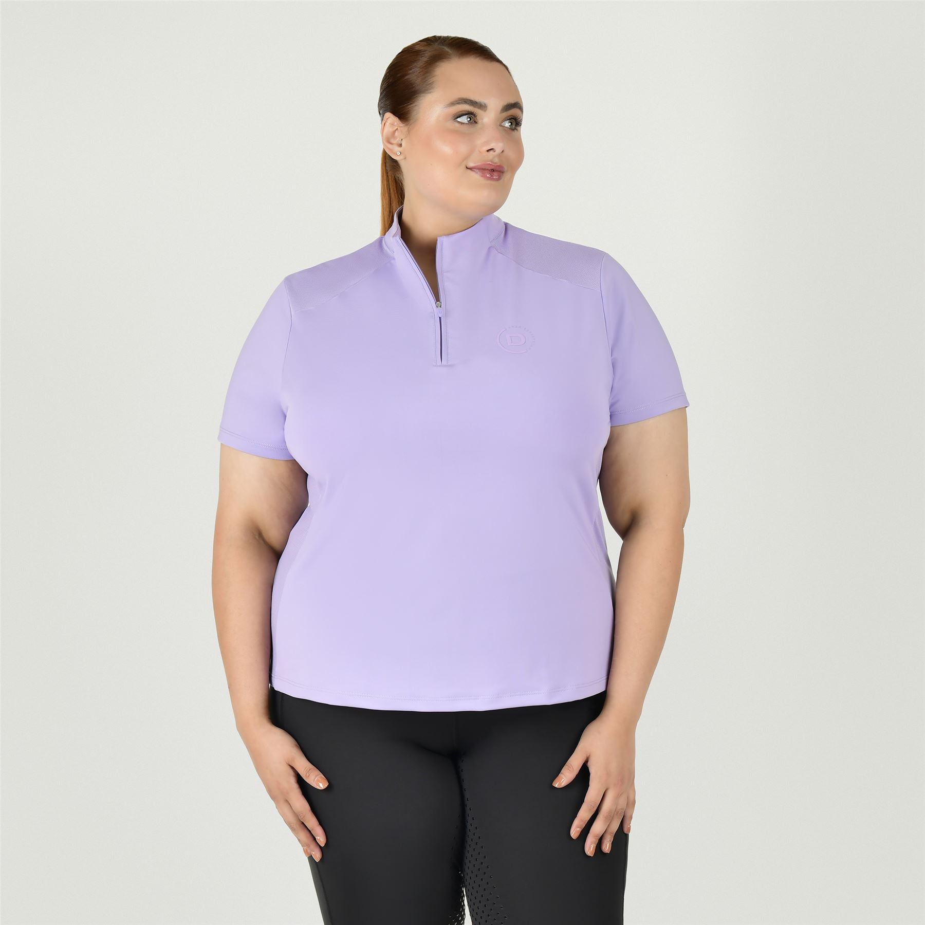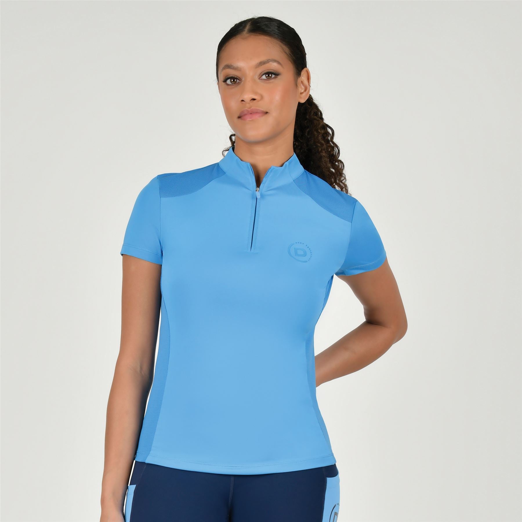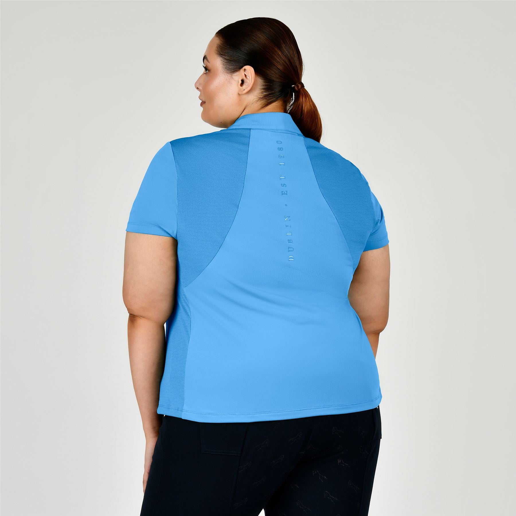 Introducing the Dublin Tabby Short Sleeve Riding Top - the perfect companion for every horse ride! This stylish top offers UPF 50+ sun protection and Comfort Dry Technology to keep you cool and dry all day long. With perforated yoke and side panels for breathability and airflow, you'll be able to keep your temperature regulated so you can stay focused on your riding. With a tone tone quarter zip front neck closure and seamless front stand collar in a slim fit, the Dublin Tabby Short Sleeve Riding Top was designed with you in mind. Offering a combination of protection and breathability to keep you comfortable all day at the yard or out and about. Available in regular and curve sizes, in three colours.