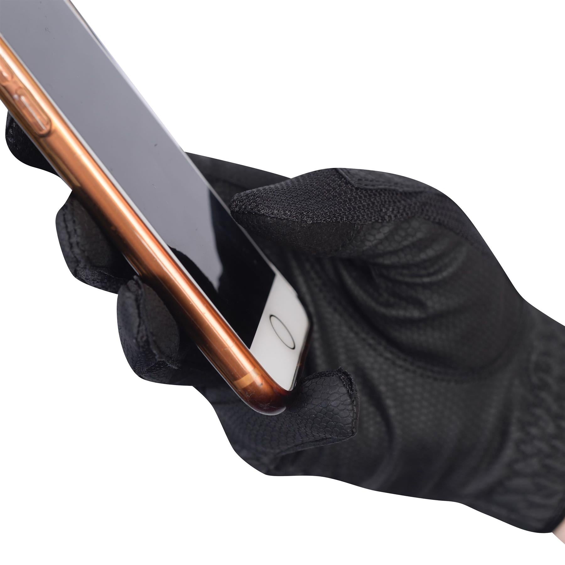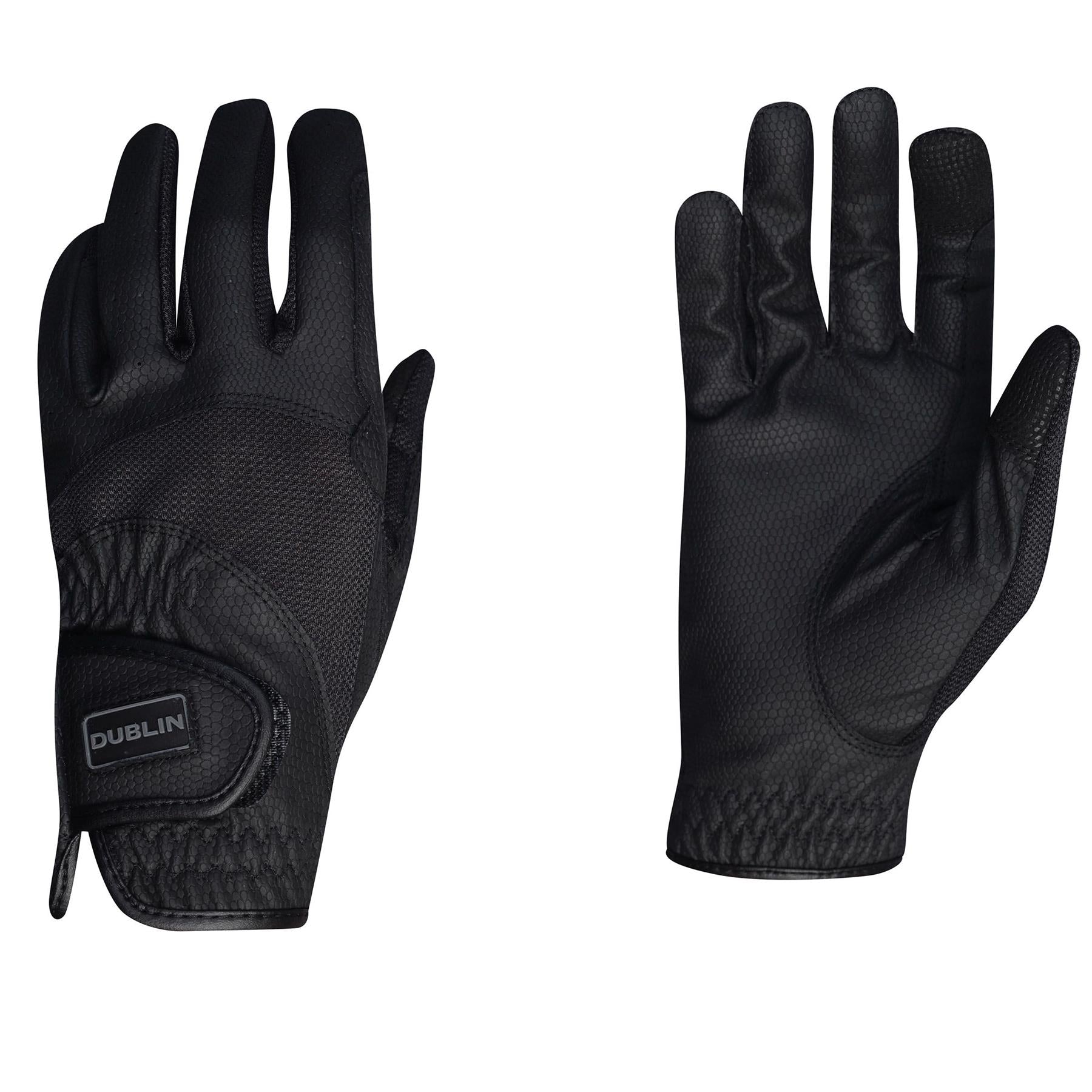 The Dublin Mesh Panel Riding Gloves are made from a stretchable synthetic serino fabric for comfort and grip, with air vented mesh panels across the back of the hand for breathability. Featuring an adjustable touch tape closure and are touch screen compatible for ease of use.